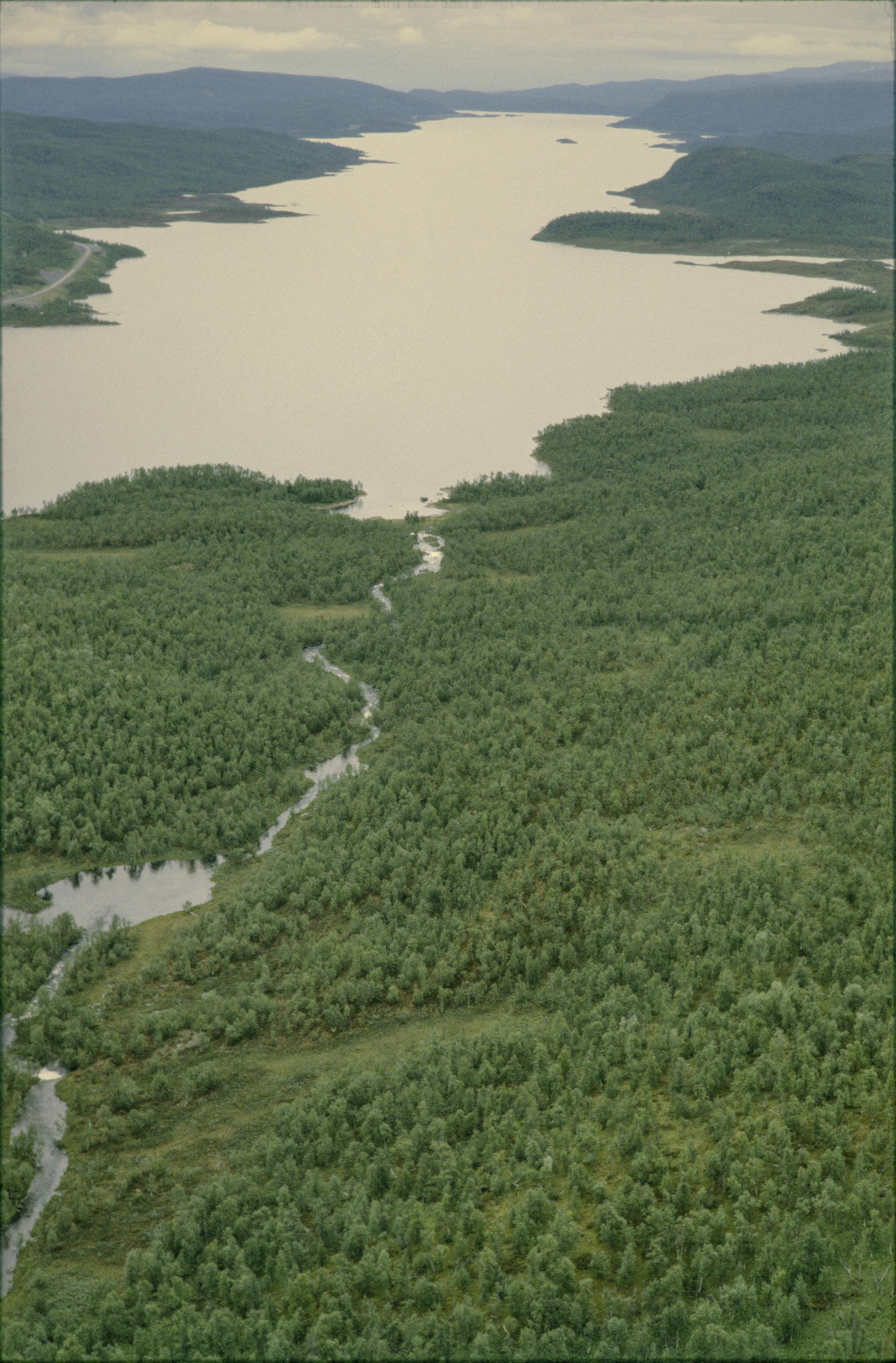 Beskrivning: Silbojokks silverhytta i nordvästra ändan av sjön Sädvajaure (Sädvvájávrre). I bildens mitt utloppet av ån Silbojokk (Silbbajåhkå). Vid utloppet hyttlämningar efter Nasafjälls silververk RAÄnr Arjeplog 368:1, boplats Arjeplog 296:1 och begravningsplats Arjeplog 4232. Bilden är tagen mot (väderstreck): OSO