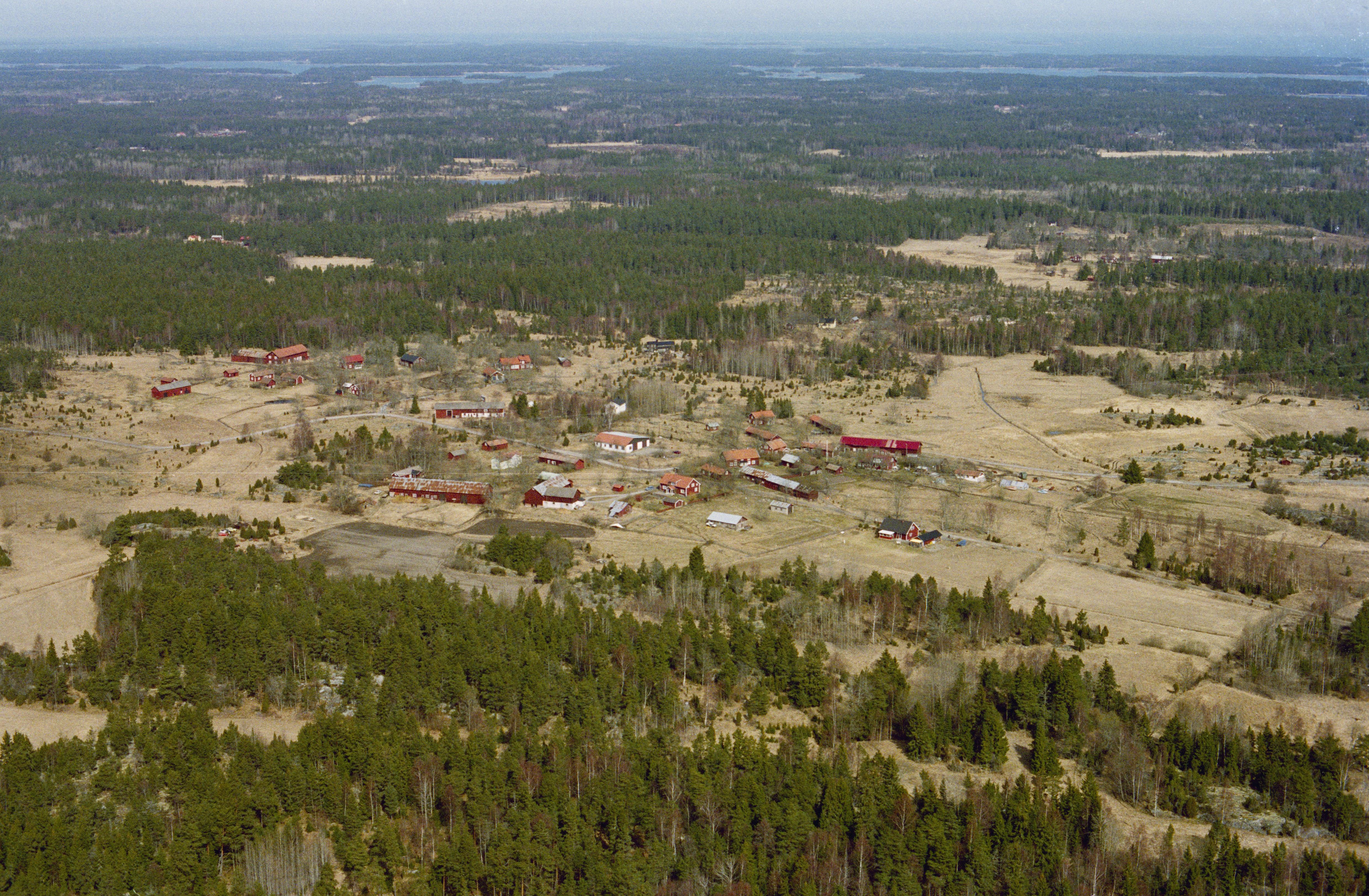 Beskrivning: Tuskö by på Söderön. I bildens nedre del gravfält RAÄnr Börstil 61:1. Bilden är tagen mot (väderstreck): N