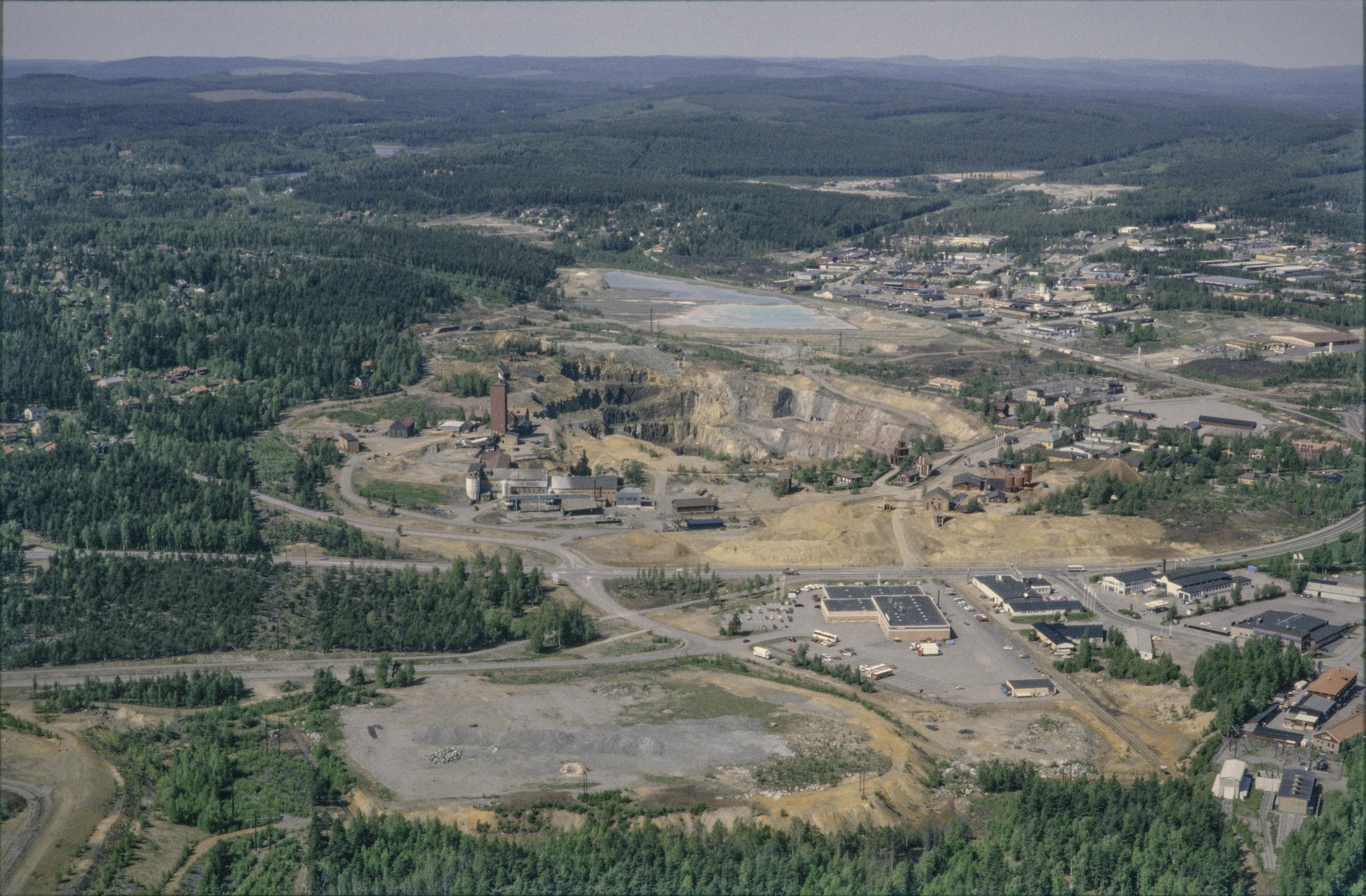 Beskrivning: Anmärkning (övrig): Riksintresse-nr/namn: W15 - Falun. Socken: Falu stad och Stora Kopparberg. Motivering: Industri- och stadsmiljö som speglar en nära tusenårig industriell tradition, kring Sveriges viktigaste tidigindustriella koppargruva som hade avgörande ekonomisk betydelse under landets stormaktstid, jämte tillhörande hyttområden samt residensstadens utveckling under 1800-talets slut och 1900-talets början. (Gruvmiljö, Tidigindustriell miljö). - Uttryck för riksintresset: Området kring gruvan med spår av en medeltida kolonisation och småskaligt jordbruk, dominerande bergsmansgårdar, storslagna slaggvarpar och hyttlämningar samt den medeltida Stora Kopparbergs kyrka, uttryck för gruvans blomstringstid vid(…) Texten i detta fält har förkortats vid migrering till e-arkivet. Se filbilagan extra.xml för fullständig information under note_archivist. Beskrivning: Gruvhålet Stora Stöten RAÄnr Falun 17:1 i Falu koppargruva sydväst i Falu stad. Gruvmuseet till höger om bildens mitt. Bilden är tagen mot (väderstreck): NV Fotosyfte: Flygbildsdokumentation