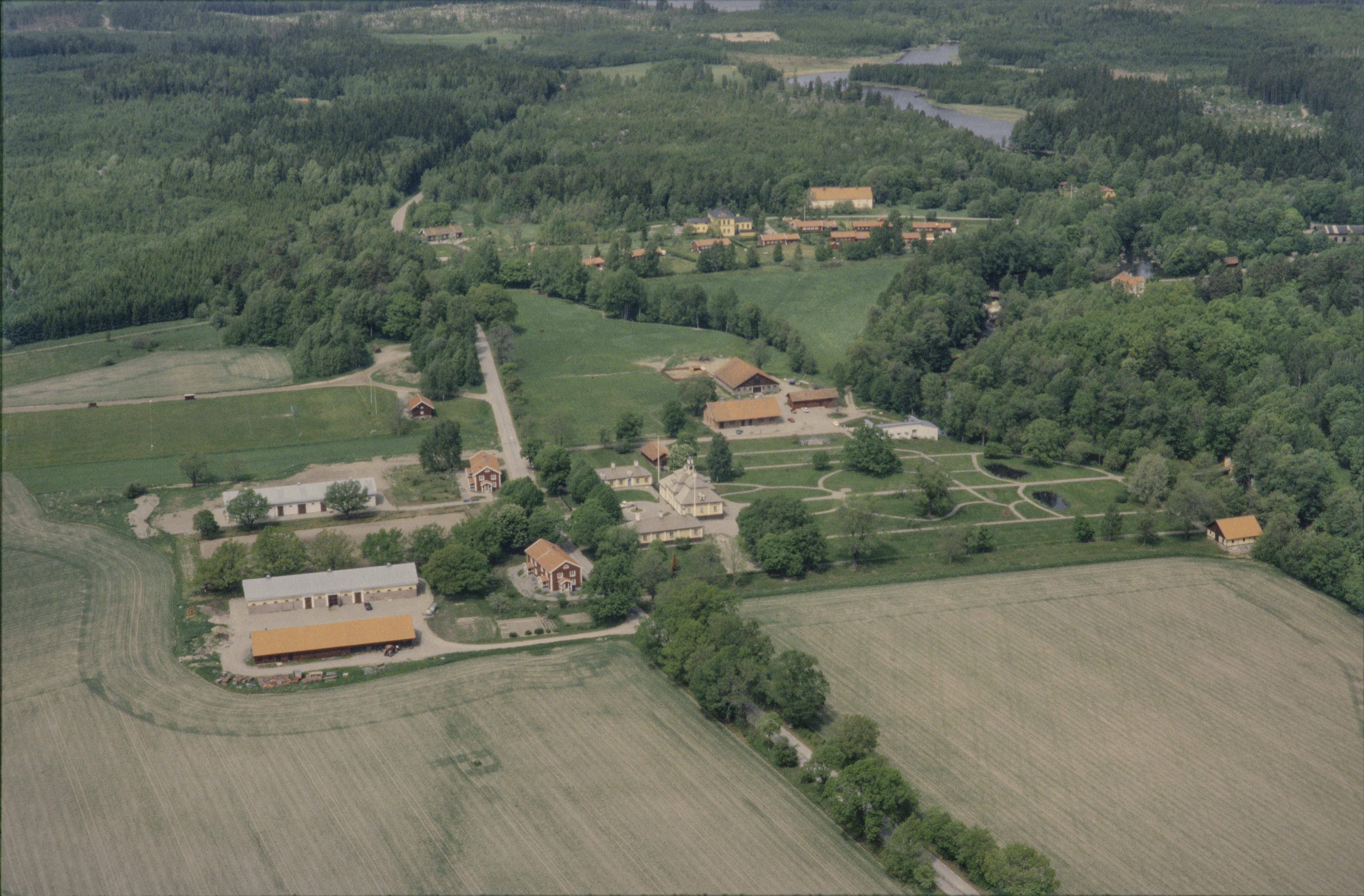 Beskrivning: Svanå bruk i Svartåns dalgång. Vid bildens mitt Svanå herrgård i slottsområdet RAÄnr Haraker 219. Hammarområde RAÄnr Haraker 77:1 över bildens mitt. Bilden är tagen mot (väderstreck): NNV