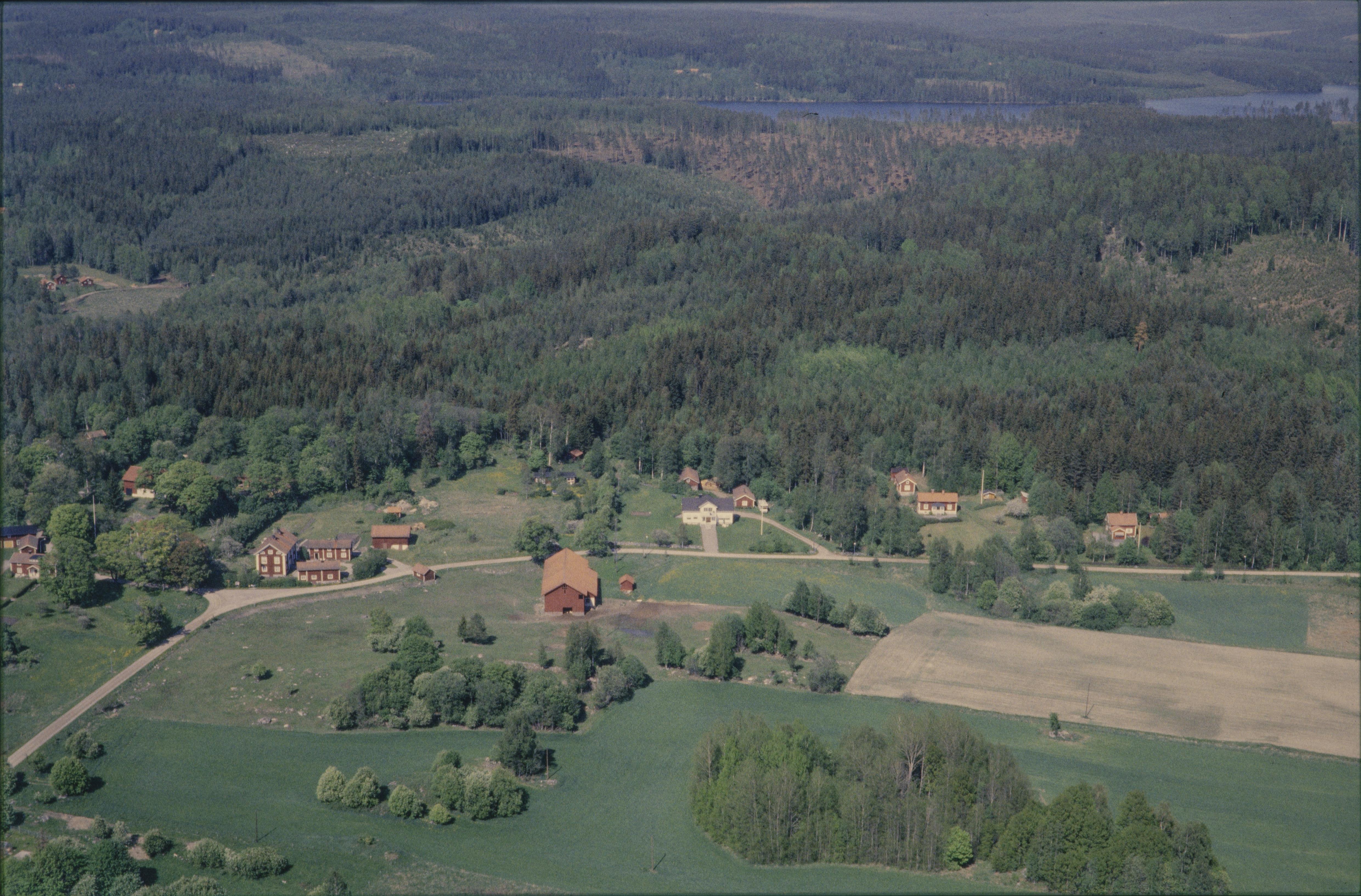 Beskrivning: Lindesby. Till vänster om bildens mitt gruvområde / gruvhål RAÄnr Järnboås 146:1. Bilden är tagen mot (väderstreck): NNO