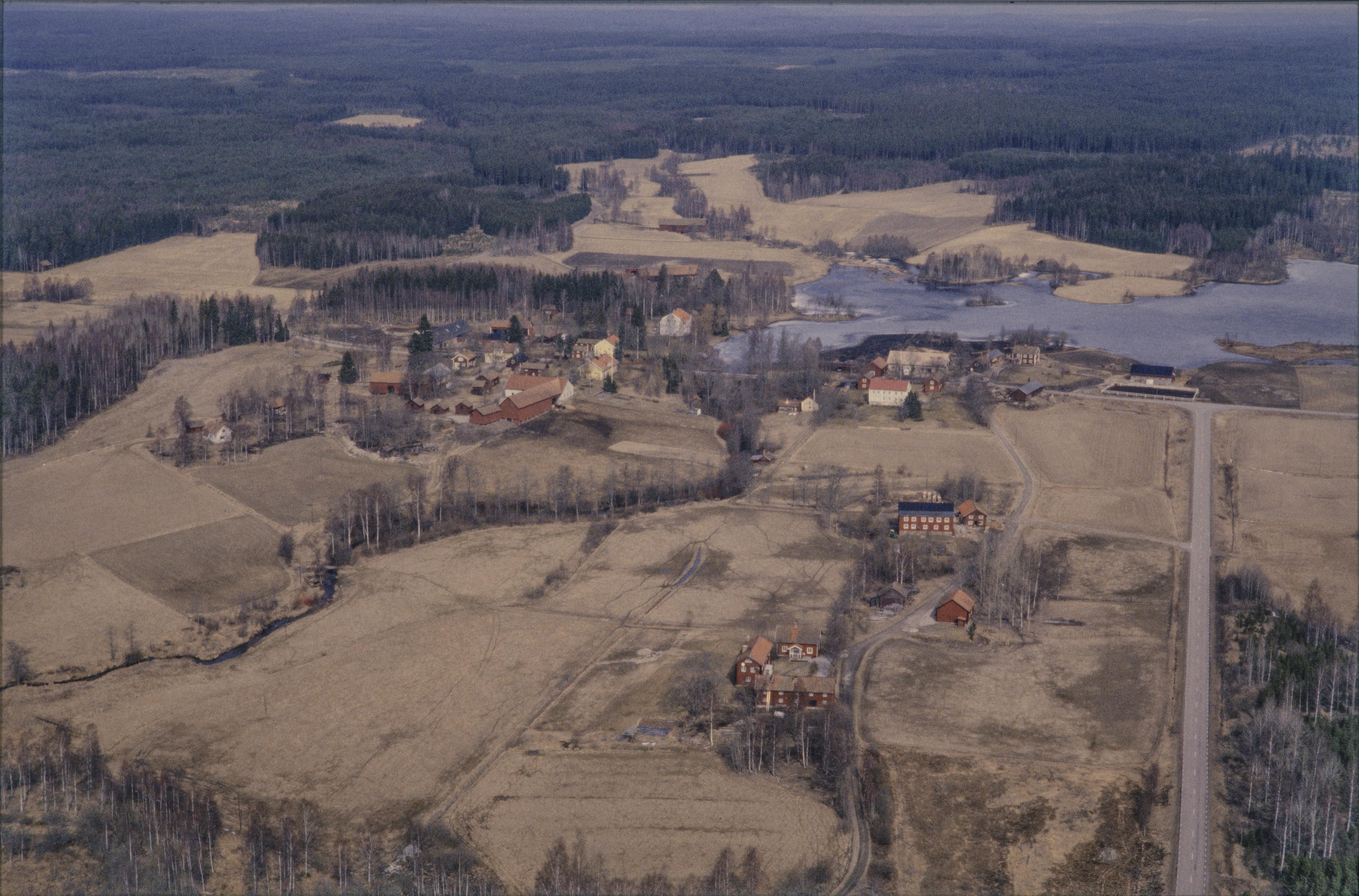 Beskrivning: Olsbennings by vid sjön Dammen i Svartåns dalgång. Vid bildens mitt hytt- och hammarområde RAÄnr Karbenning 27:1. Över bildens mitt hyttområde RAÄnr Karbenning 26:1-2. Bilden är tagen mot (väderstreck): N