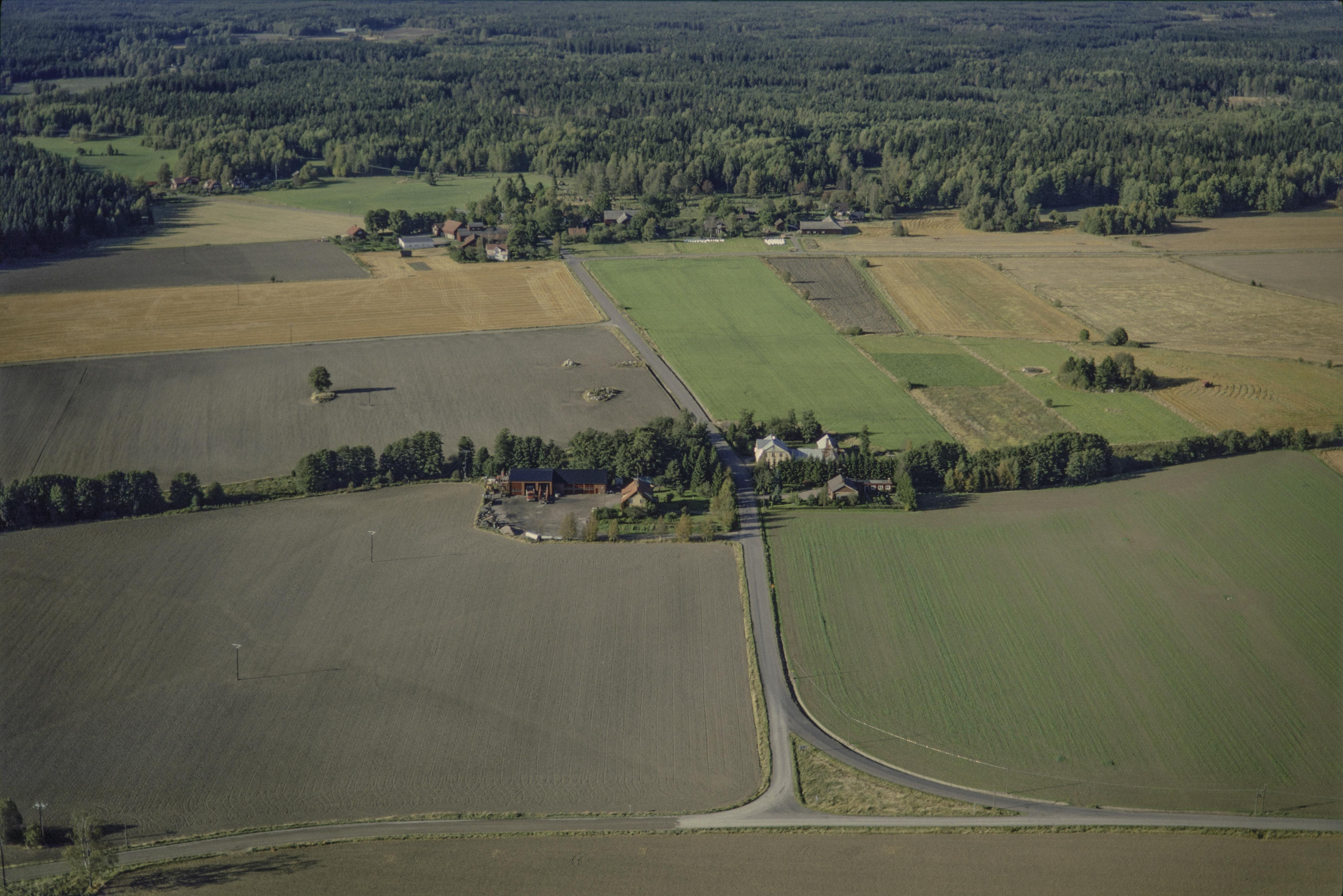 Beskrivning: Björklingeåns dalgång. Ån markerar gränsen mellan socknen Skuttunge (i bildens nedre del) och Björklinge (i bildens övre del). Vid bildens mitt Forsbybro by (i Skuttunge socken). I bildens nedre del gravfält RAÄnr Skuttunge 142:1. Bilden är tagen mot (väderstreck): N