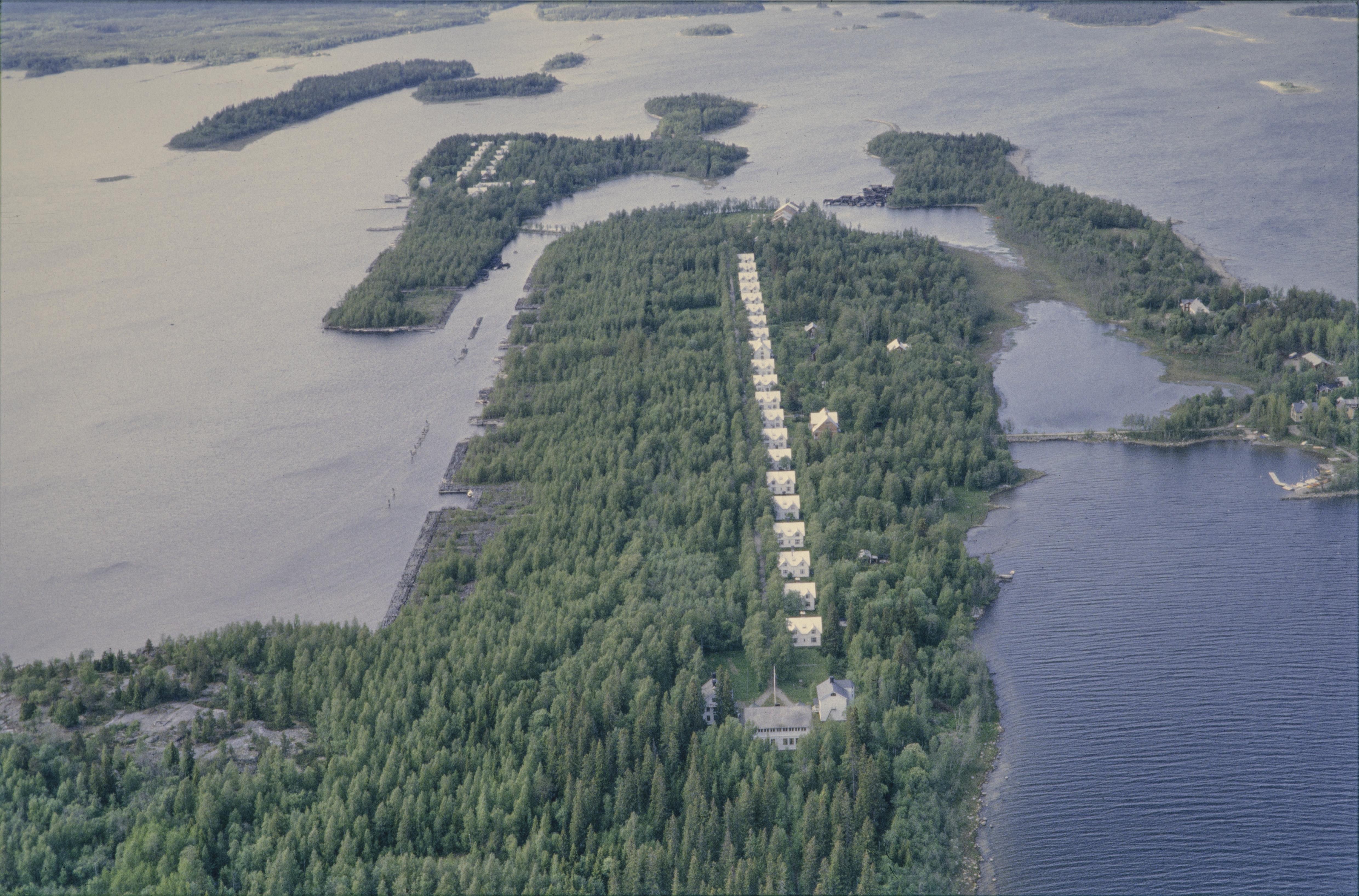 Beskrivning: Ögruppen Norrbyskär i norra delen av Örefjärden. Tidigare industriort med ångdrivet sågverk, arbetarbostäder, herrgård, skola med kyrksal, kägelbana m.m. anlagd på 1890-talet. Norrbyskärs skola med kyrksal under bildens mitt. Bilden är tagen mot (väderstreck): N