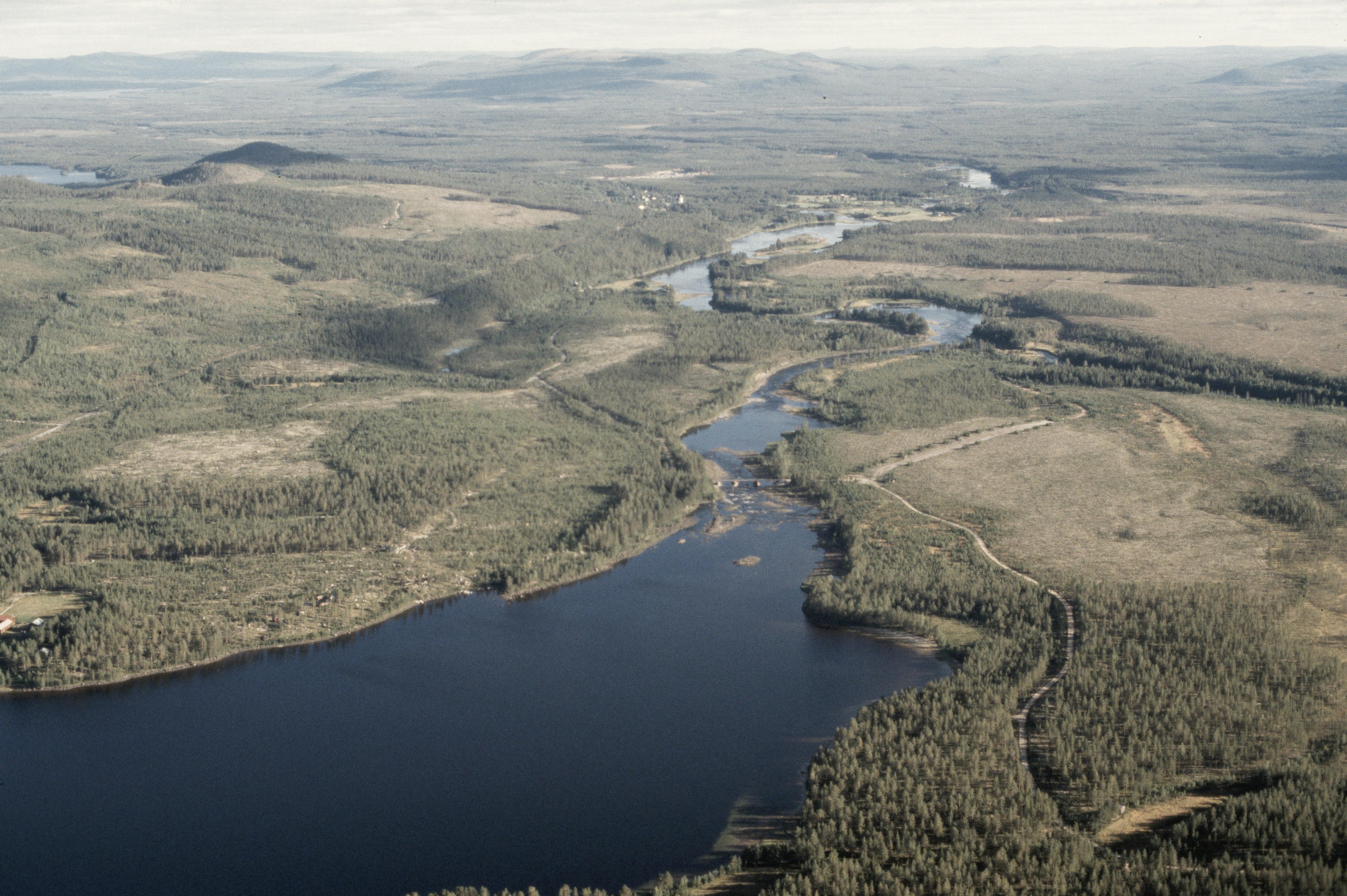 Beskrivning: Älven Ljusnan i södra delen av Neder-Ransjön, sydväst om Ransjö by. Vid bildens mitt bro RAÄnr Linsell 92:1 över Ransjöforsen i Linsellborrens naturreservat. Bilden är tagen mot (väderstreck): S