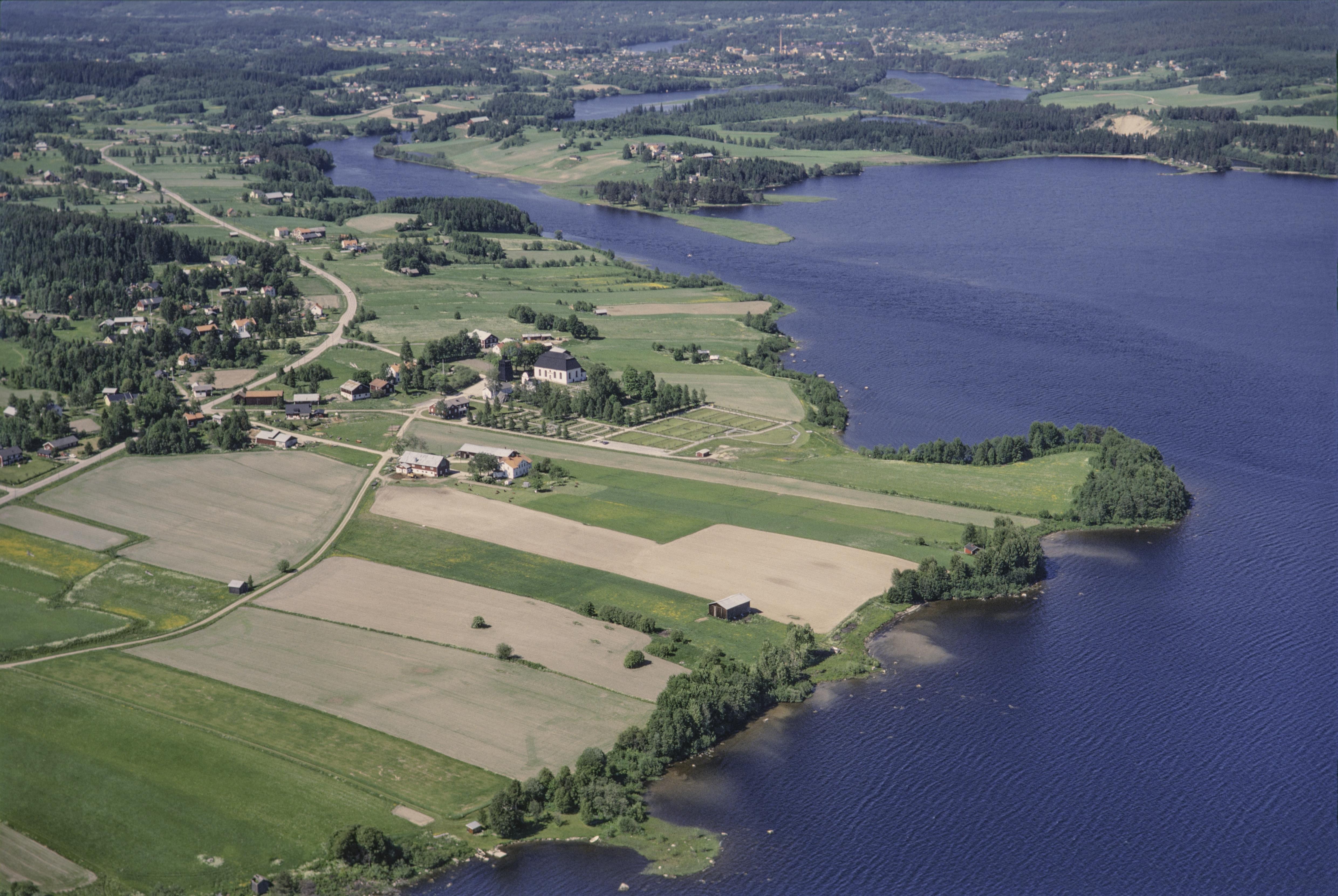 Beskrivning: Ån Ljungans dalgång vid Attmars kyrkby och sjön Marmen. Attmars kyrka i bildens mitt. Vid kyrkan boplats RAÄnr Attmar 188:1, högarna Attmar 8:1-3 m.m. I bildens övre del Matfors tätort i Tuna socken. Bilden är tagen mot (väderstreck): NNV