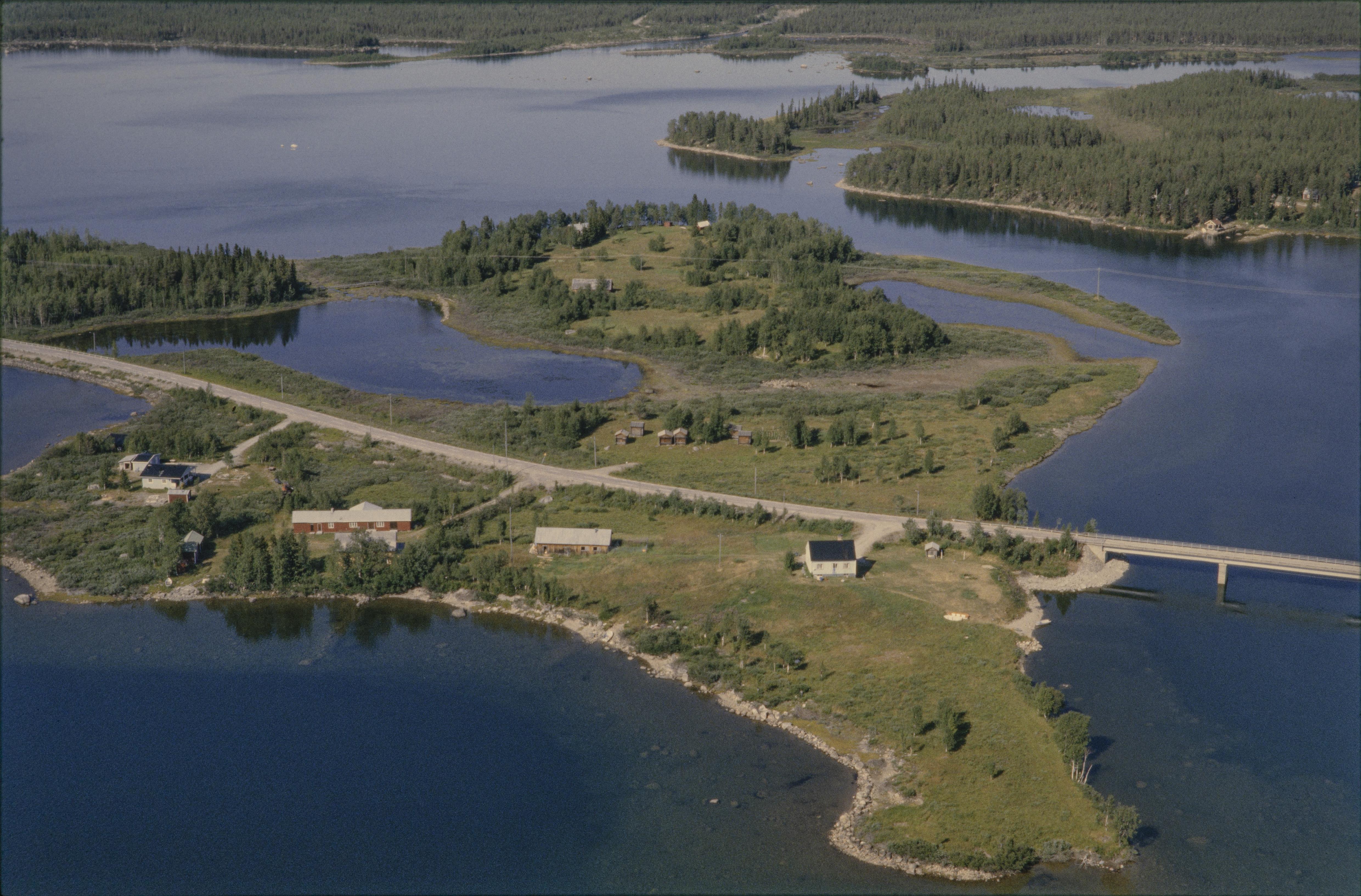 Beskrivning: Byn Tjåmotis (Tjoammbe) vid utloppet till Blackälven (Smadjeädno) mellan sjöarna Tjåmodisjaure (Tjåmodisjávrre) och Skalka (Skálkká). På udden över bildens mitt offerplats RAÄnr Jokkmokk 35:1. Bilden är tagen mot (väderstreck): NNV
