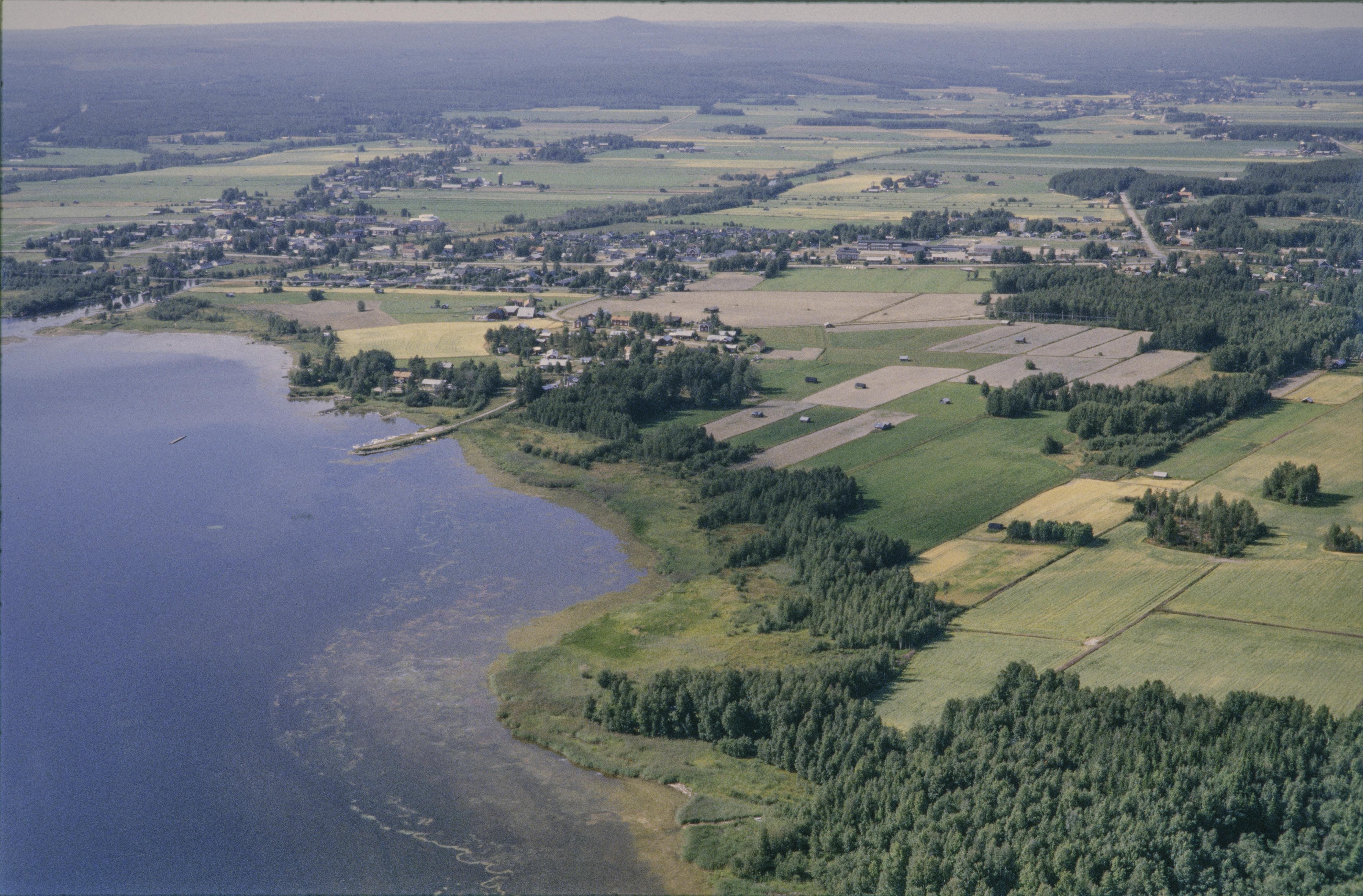 Beskrivning: Lillpiteåns dalgång (Lillpitedalen). I bildens nedre del bytomt RAÄnr Piteå socken 86:1, 87:1, m.m. i byn Ryggskatan. Uppe till vänster Lillpiteälvens utlopp i Svensbyfjärden och byn Roknäs. Till höger vid bildens mitt områdena Storåkern, Lillåkern och Sjulnäs. Bilden är tagen mot (väderstreck): VNV