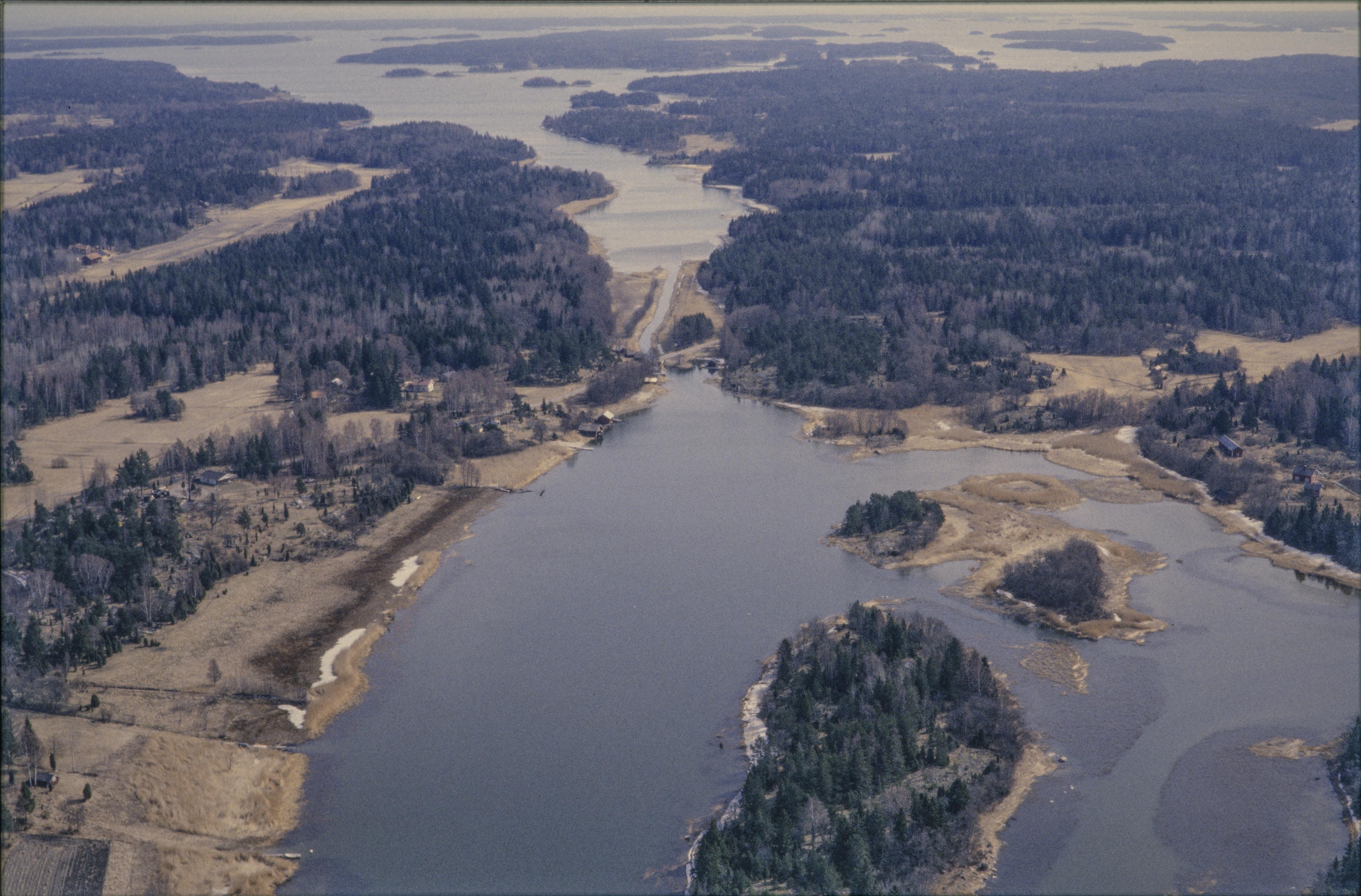 Beskrivning: Östhammarsfjärden mot Raggaröfjärden. Söderön till vänster och Tvärnö uppe till höger. Till vänster Tuskö by. Vid bildens mitt Gruvskäret i Tuskösundet med gruvområde RAÄnr Börstil 256:1. Hargs socken i bildens övre del till höger. Bilden är tagen mot (väderstreck): SO