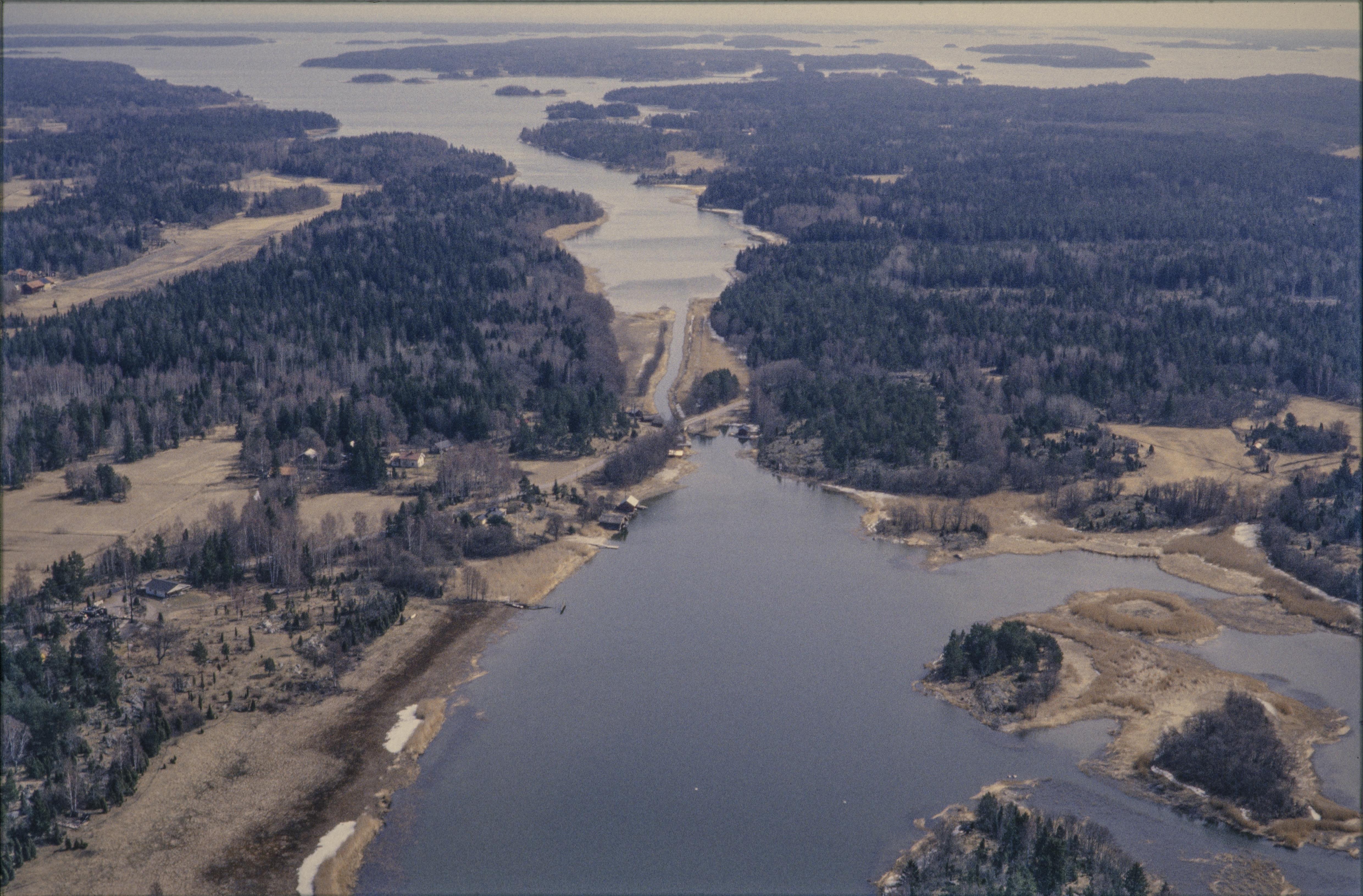 Beskrivning: Östhammarsfjärden mot Raggaröfjärden. Söderön till vänster och Tvärnö uppe till höger. Till vänster Tuskö by. Vid bildens mitt Gruvskäret i Tuskösundet med gruvområde RAÄnr Börstil 256:1. Hargs socken i bildens övre del till höger. Bilden är tagen mot (väderstreck): SO