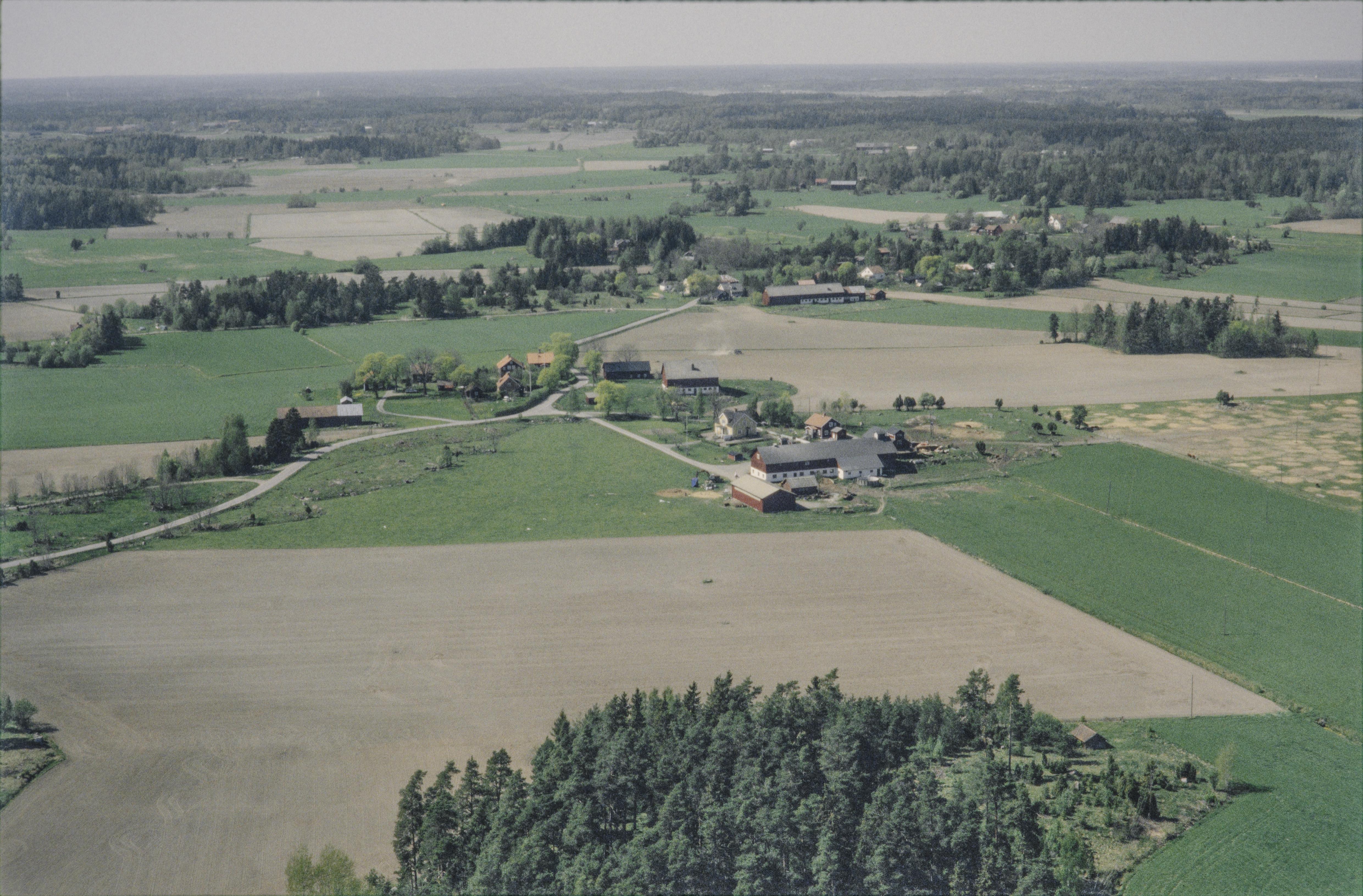 Beskrivning: Vid bildens mitt Rista by i Olandsåns dalgång. I bildens nedre kant gravfält RAÄnr Ekeby 7:1 och fångstgrop Ekeby 157:1. Bilden är tagen mot (väderstreck): V