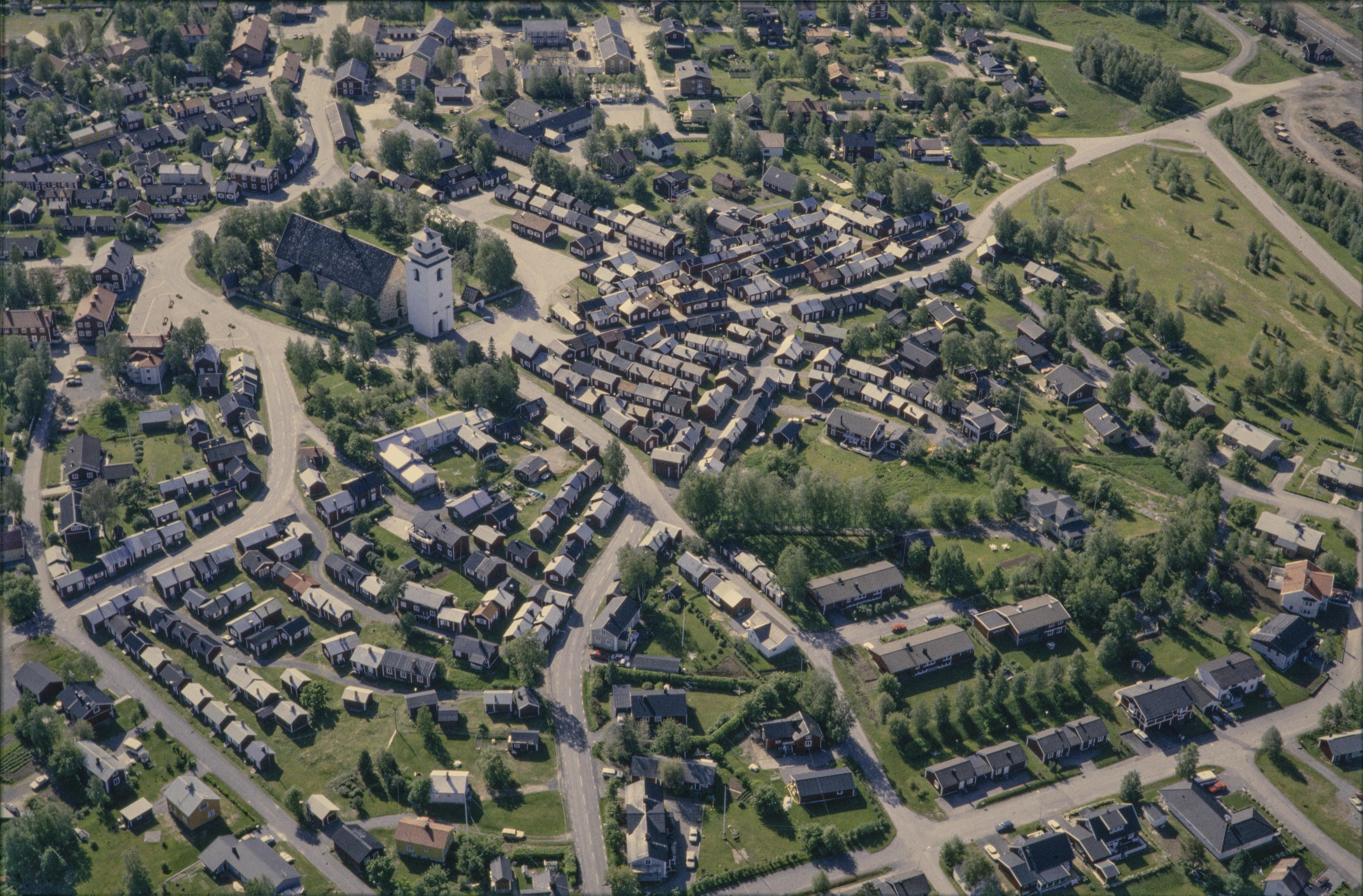 Beskrivning: Gammelstads kyrkstad och världsarv. Nederluleå kyrka till vänster över bildens mitt. Vid kyrkan ett minnesmärke RAÄnr Nederluleå 67:1, bytomt Nederluleå 175:1, m.m. Bilden är tagen mot (väderstreck): OSO