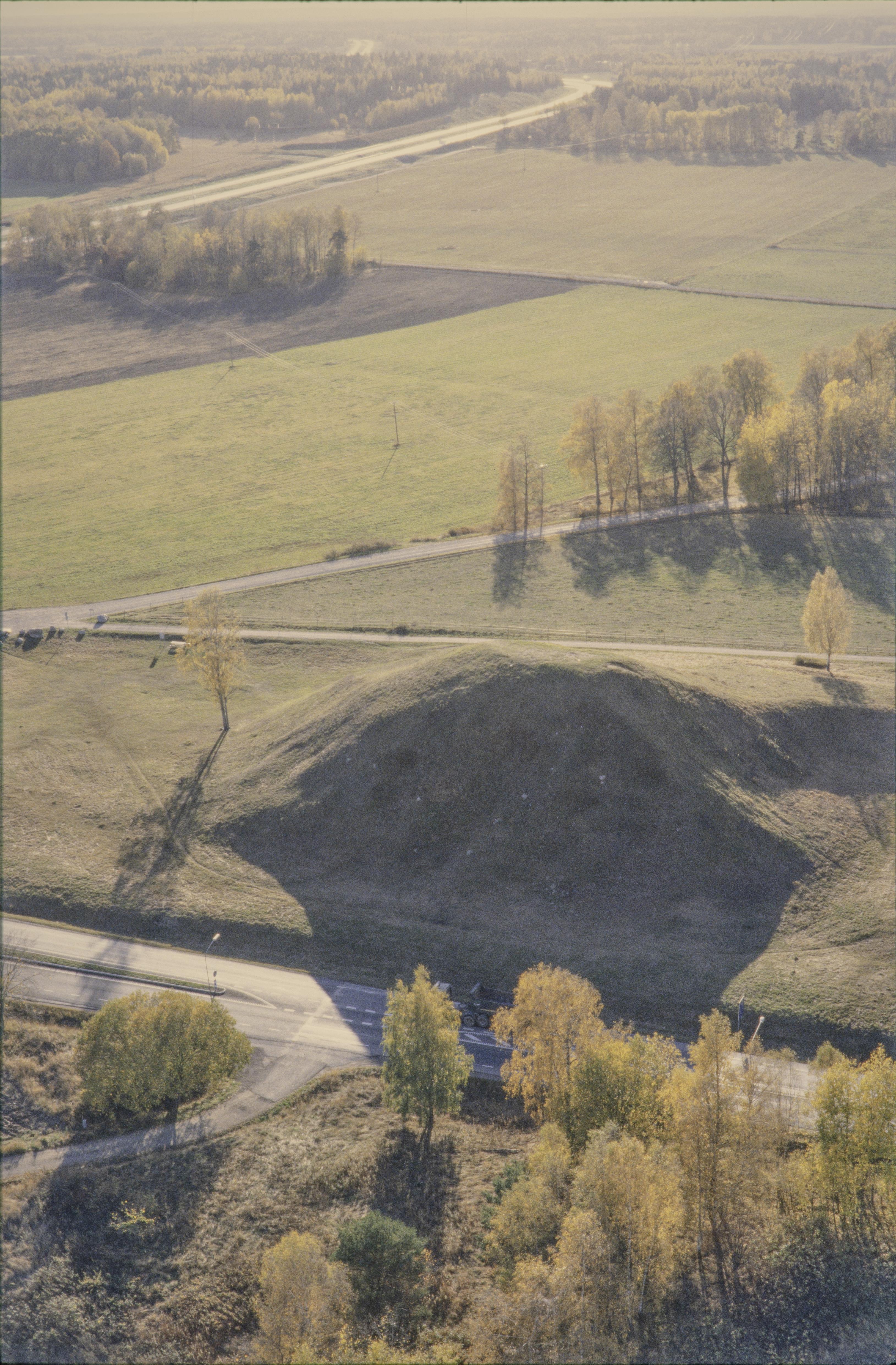Beskrivning: Gravhögen Ströbohög RAÄnr Köping 56:1 i nordvästra utkanten av staden Köping. Bilden är tagen mot (väderstreck): VSV