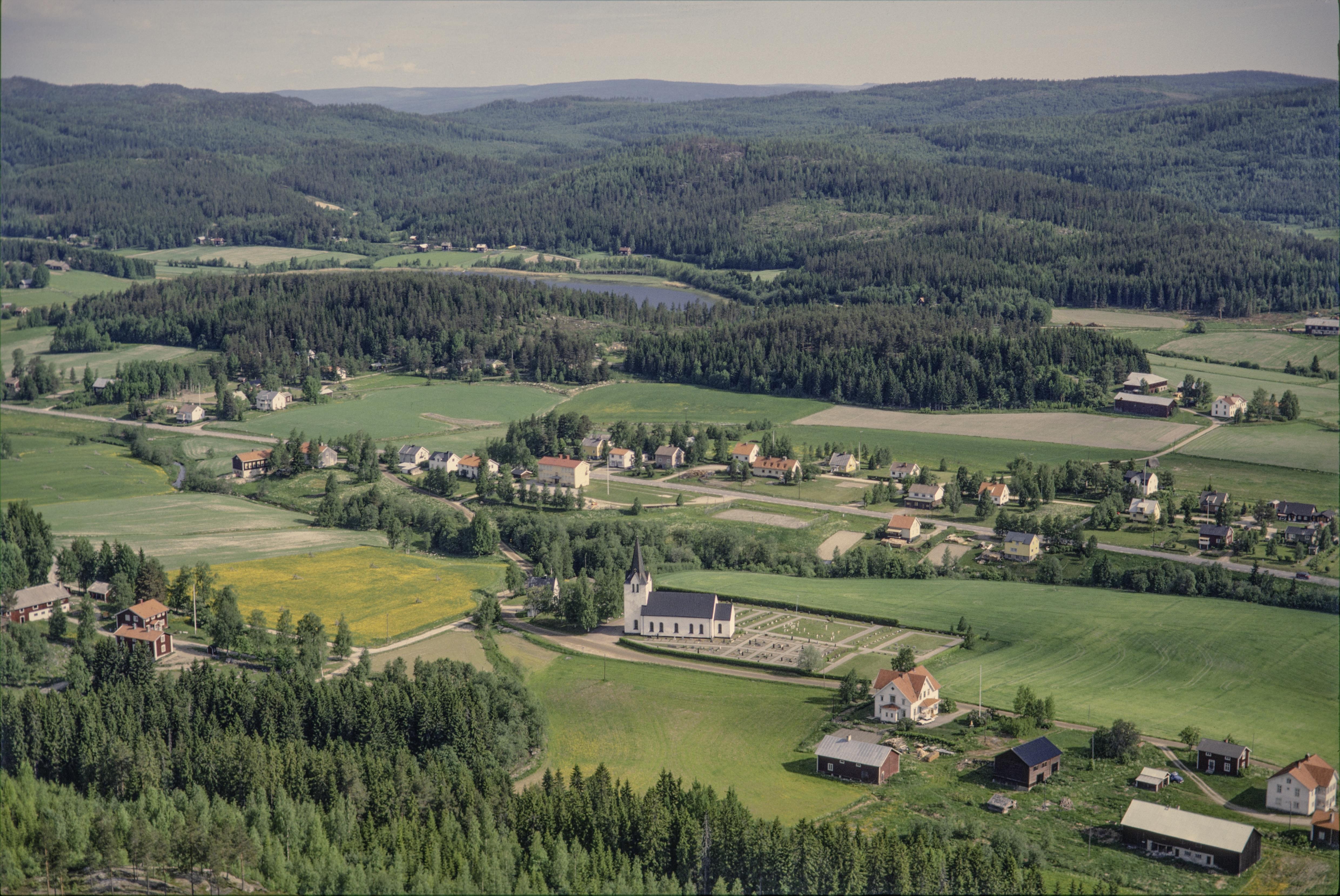 Beskrivning: Dals kyrkby. Dals kyrka under bildens mitt. Vid kyrkan bytomt RAÄnr Dal 28:1. Pannsjön över bildens mitt. Torsåkers socken i bildens övre del. Bilden är tagen mot (väderstreck): N