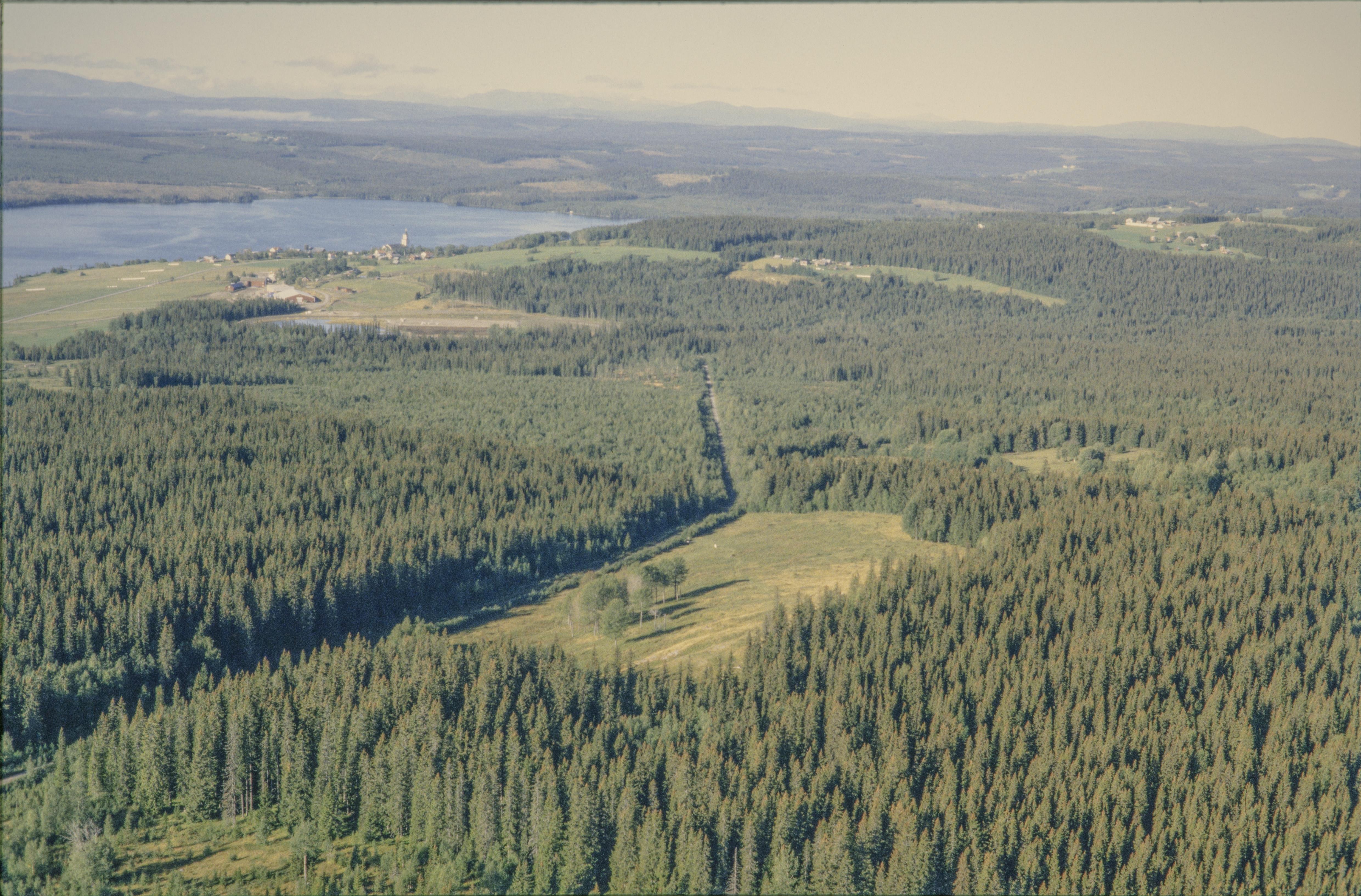 Beskrivning: I bildens nedre del ödesbölet Svedäng med husgrunder och fossila åkrar RAÄnr Alsen 92:1-2, 178:1 och 179:1-2. I bildens övre del Alsens kyrka och kyrkby vid Alsensjön. Bilden är tagen mot (väderstreck): VSV