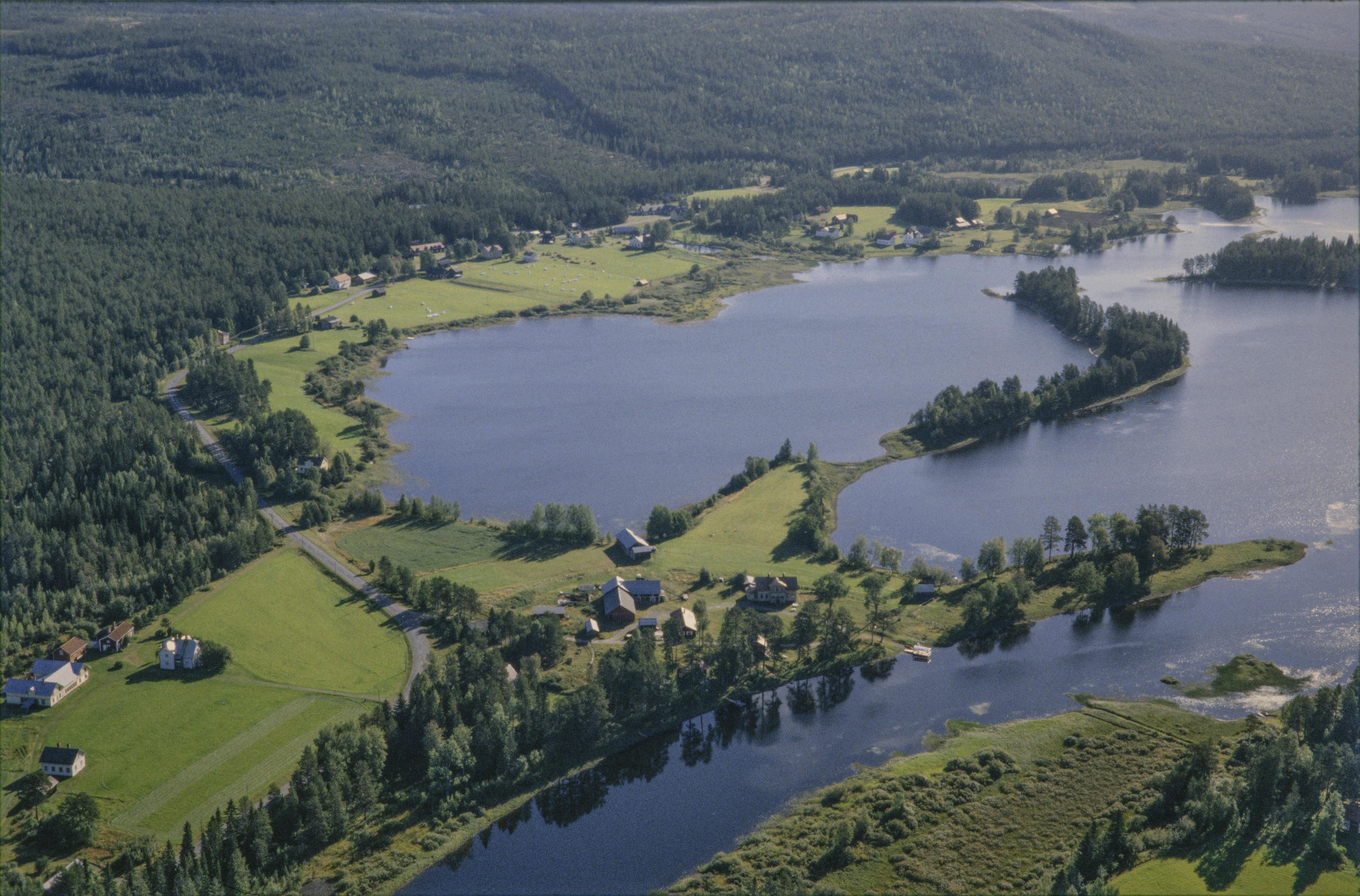Beskrivning: Ammeråns dalgång och naturreservat. Häbbersfjärden (vid bildens mitt) och Skyttmoselet (uppe till höger). På och vid Habbersnäset (till höger över bildens mitt) boplatser RAÄnr Borgvattnet 73:1, 125:1, 159:1 m.fl. Skyttmons by i bildens övre del. Bilden är tagen mot (väderstreck): OSO