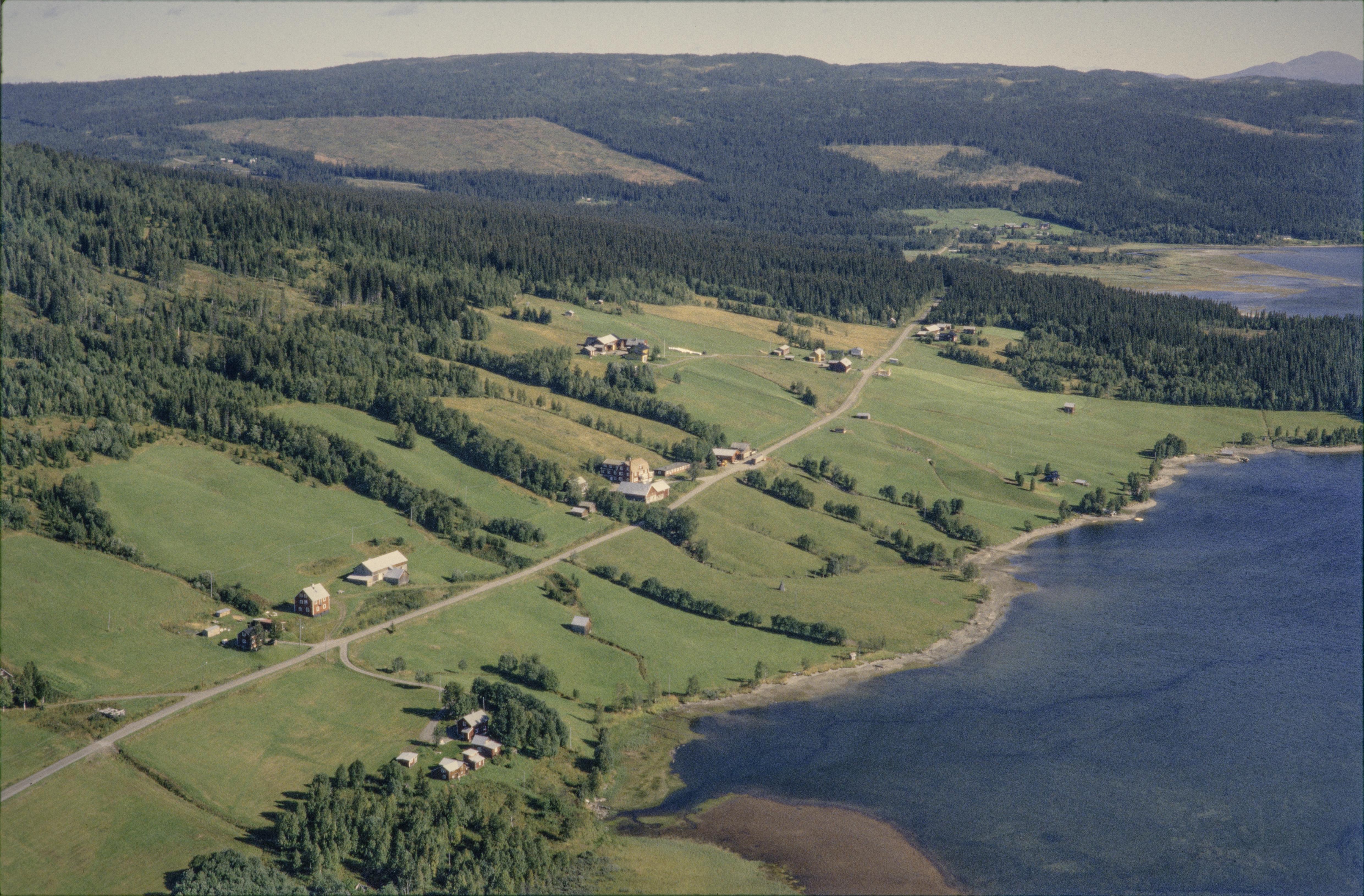 Beskrivning: Norra delen av sjön Lill-Jorm. Jormliens by söder om Lerdalen och berget Jormliklumpen. I skogen till vänster över bildens mitt fornlämning RAÄnr Frostviken 160:1. Bilden är tagen mot (väderstreck): ONO
