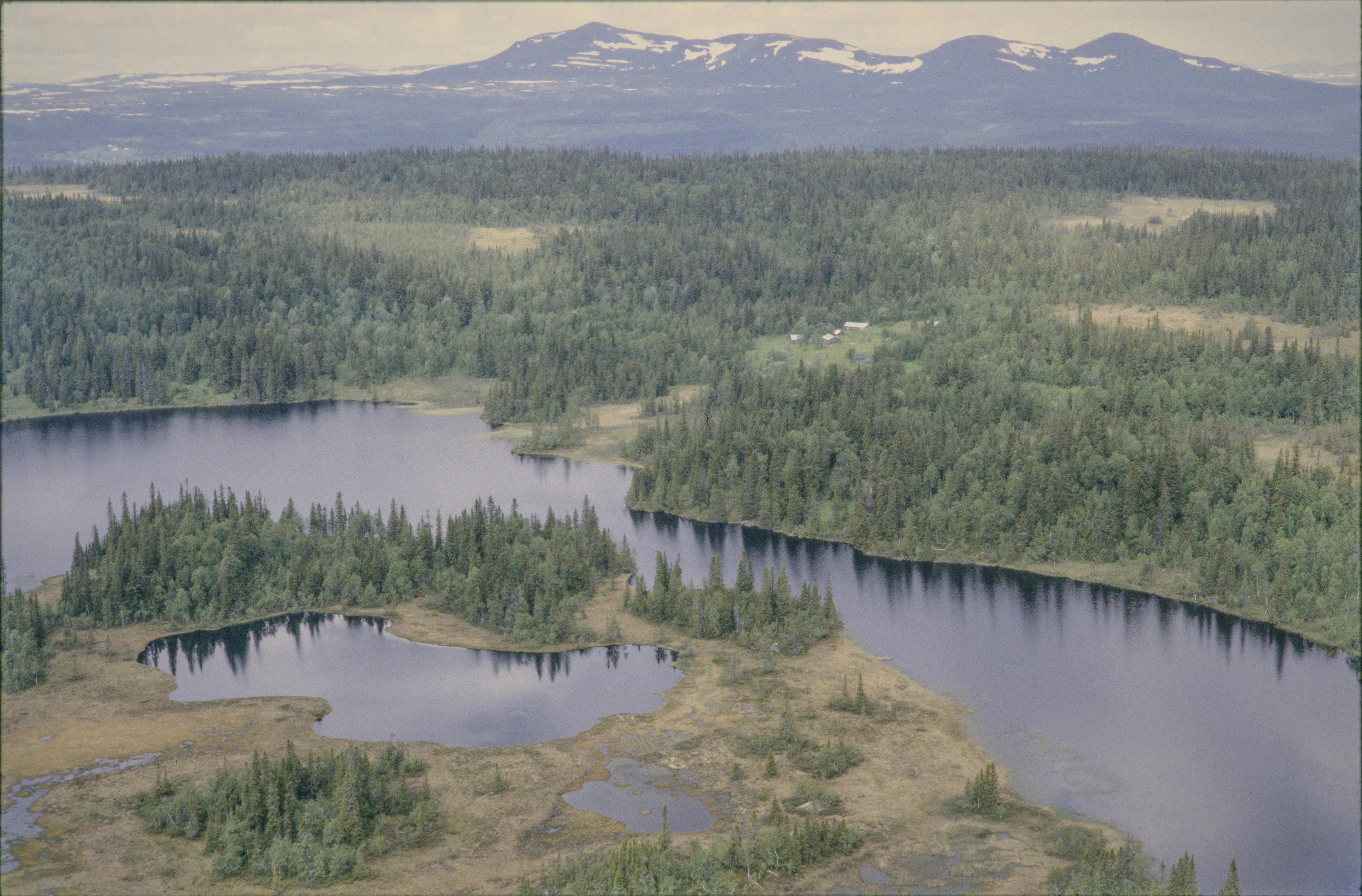 Beskrivning: Sjön Höktjärnen i fjällområdet nordväst i socknet Föllinge, vid gränsen mot socknet Hotagen (i bildens övre del). Till höger om bildens mitt fäbodområdet Erik-Persabodarna. Bilden är tagen mot (väderstreck): NV