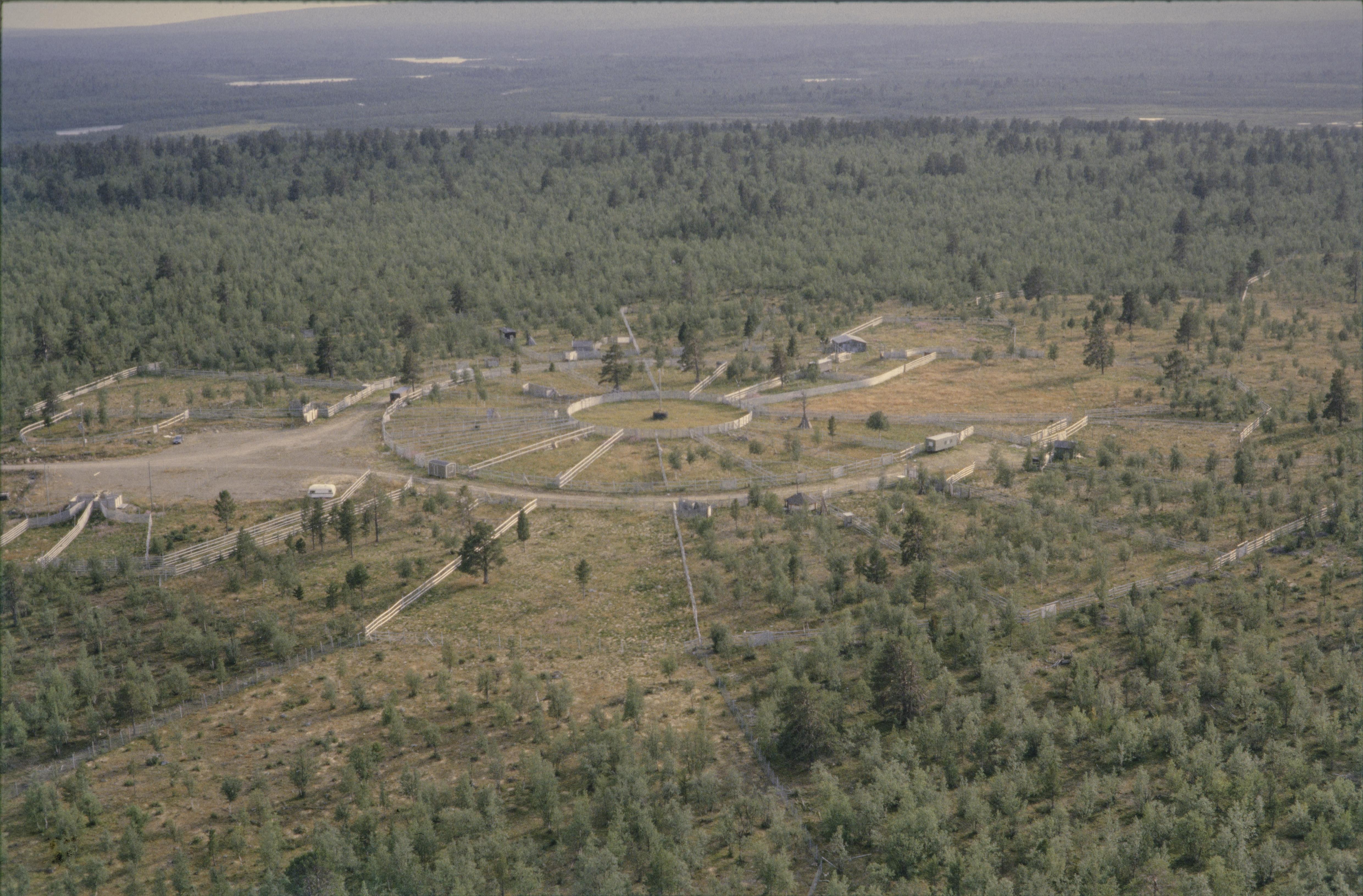 Beskrivning: Område med rengärden i skogen nordväst om Kaitum (Njavvi) by och sameviste. Bilden är tagen mot (väderstreck): SSV