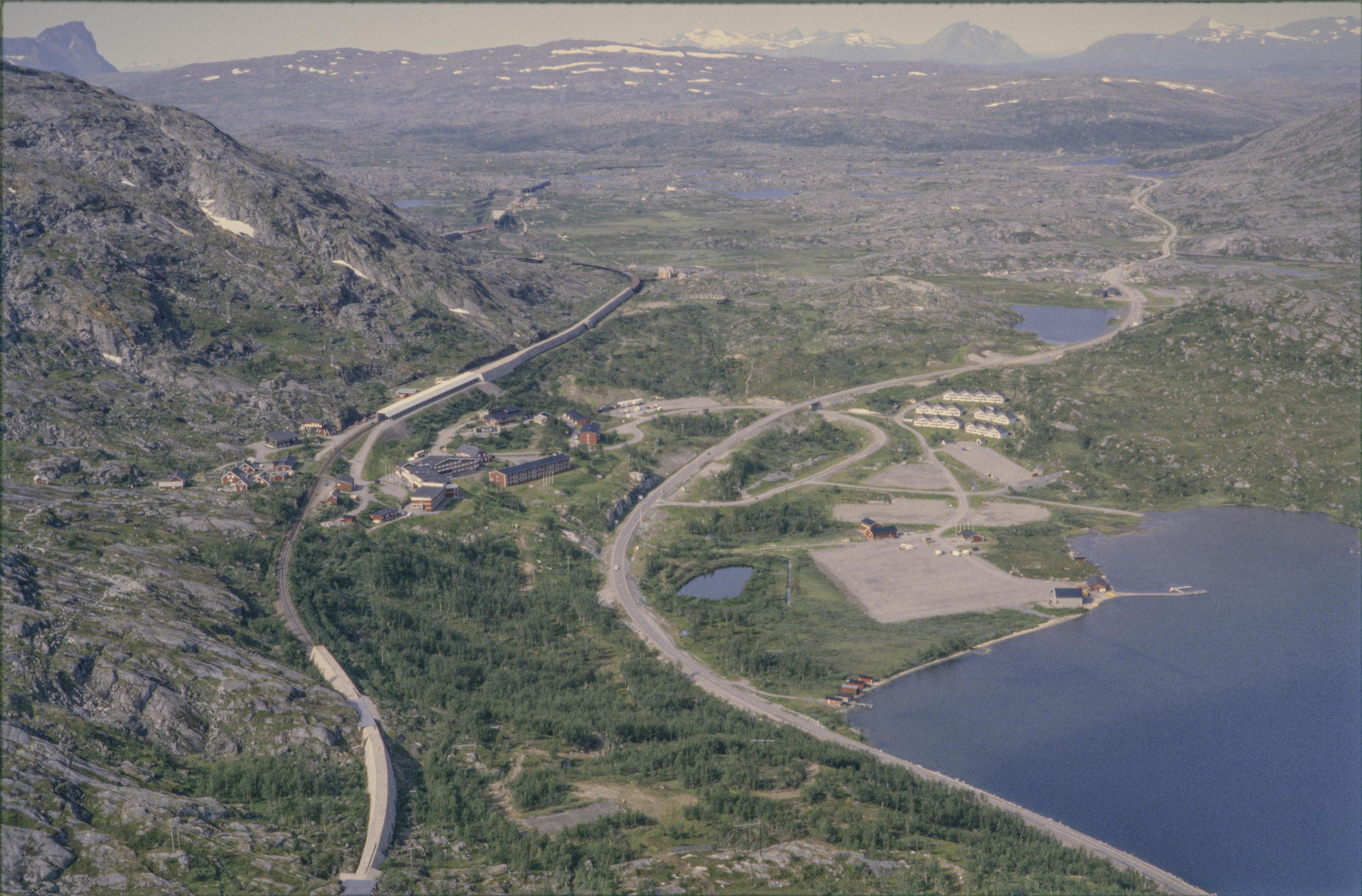 Beskrivning: Anmärkning (övrig): Riksintresse-nr/namn: BD36 - Torneträskområdet - Ofotenbanan. Socken: Jukkasjärvi. Motivering: Järnvägsmiljö längs med Ofotenbanan, som är en viktig del i länets industri- och teknikhistoria och landets första, längre elektrifierade bana. Ofotenbanan förde med sig att gruvnäringen fick ett uppsving och att turismen kunde utvecklas i området. - Uttryck för riksintresset: Malmbanan och de lämningar som arbetet med denna gett upphov till; stationsbyggnader, materielväg, grunder och kyrkogård efter anläggarsamhällena vid Tornehamn och Katterjåkk, några äldre hus, grunder efter lokstall, hus, hotell och pumpstation bl a vid Riksgränsen. - I området ingår även: Sjangeli, koppargruva från 1600-talet och Kuokkel, koppargruva från slutet av 1800-talet. [Texten uppdaterat av Riksantikvarieämbetet våren 2013.] Beskrivning: Riksgränsen by, vintersportort och järnvägsstation öster om gränsen mellan Sverige och Norge. Järnvägen Ofotbanen (Ofotbanan / Malmbanan) i bildens vänstra del, och till höger väg E10. Nere till höger boplats RAÄnr Jukkasjärvi 370:1 vid västra ändan av sjön Vassijaure (Vássijávri). Bilden är tagen mot (väderstreck): V Fotosyfte: Flygbildsdokumentation