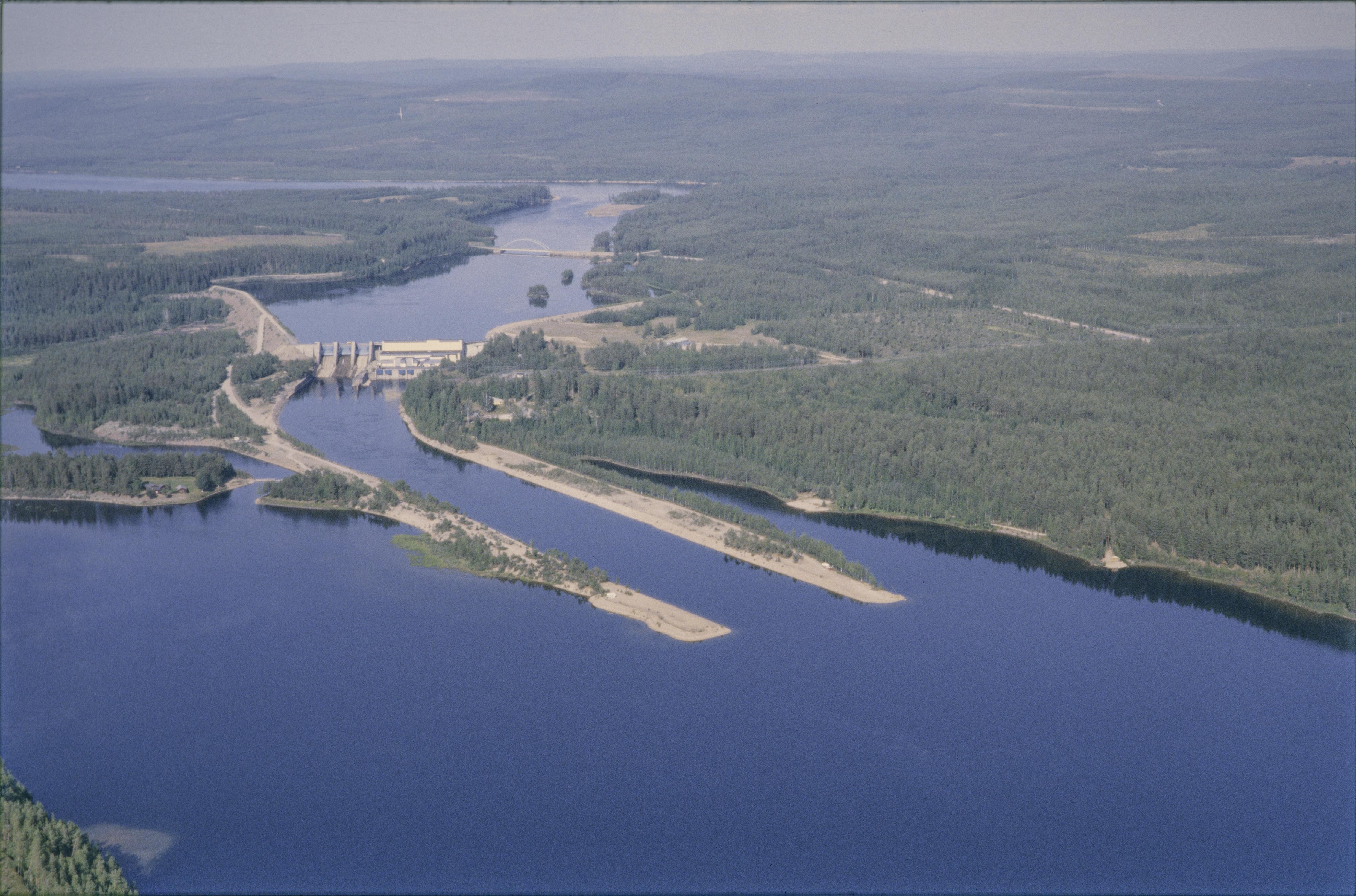 Beskrivning: Luleälven (Julevädno) vid Laxede kraftverk. Byggnadsminnet "Engelska kanalen"RAÄnr Edefors 24:3 längs högra älvstranden över bildens mitt. Områdena Mellanedet, Forsholmen och Överedet i bildens övre del. Bilden är tagen mot (väderstreck): NNO