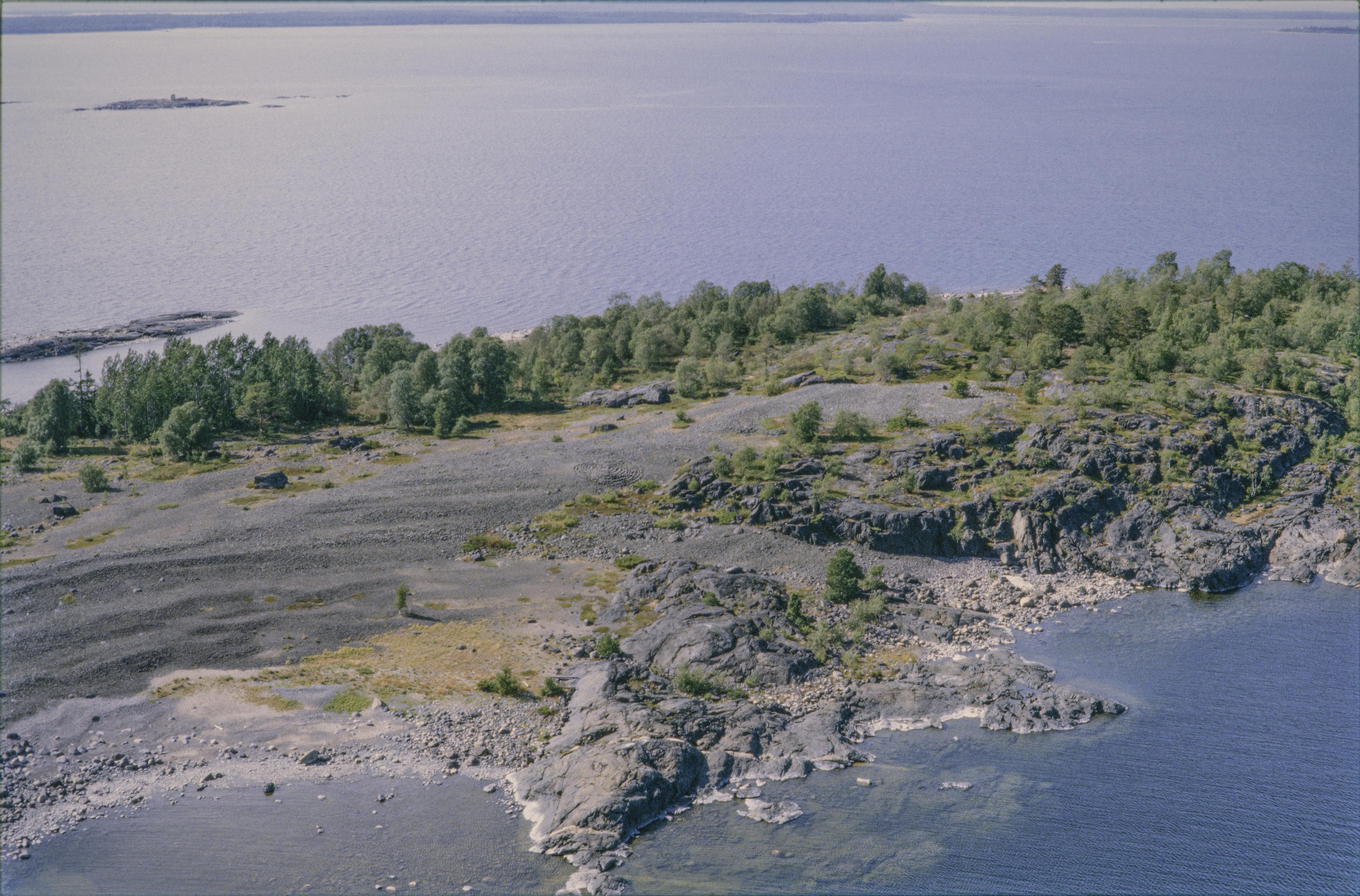 Beskrivning: Ön Kluntarna i Kallfjärden. Vid bildens mitt labyrint RAÄnr Norrfjärden 52:1. Ingår i Kallfjärdens naturreservat. Bilden är tagen mot (väderstreck): V