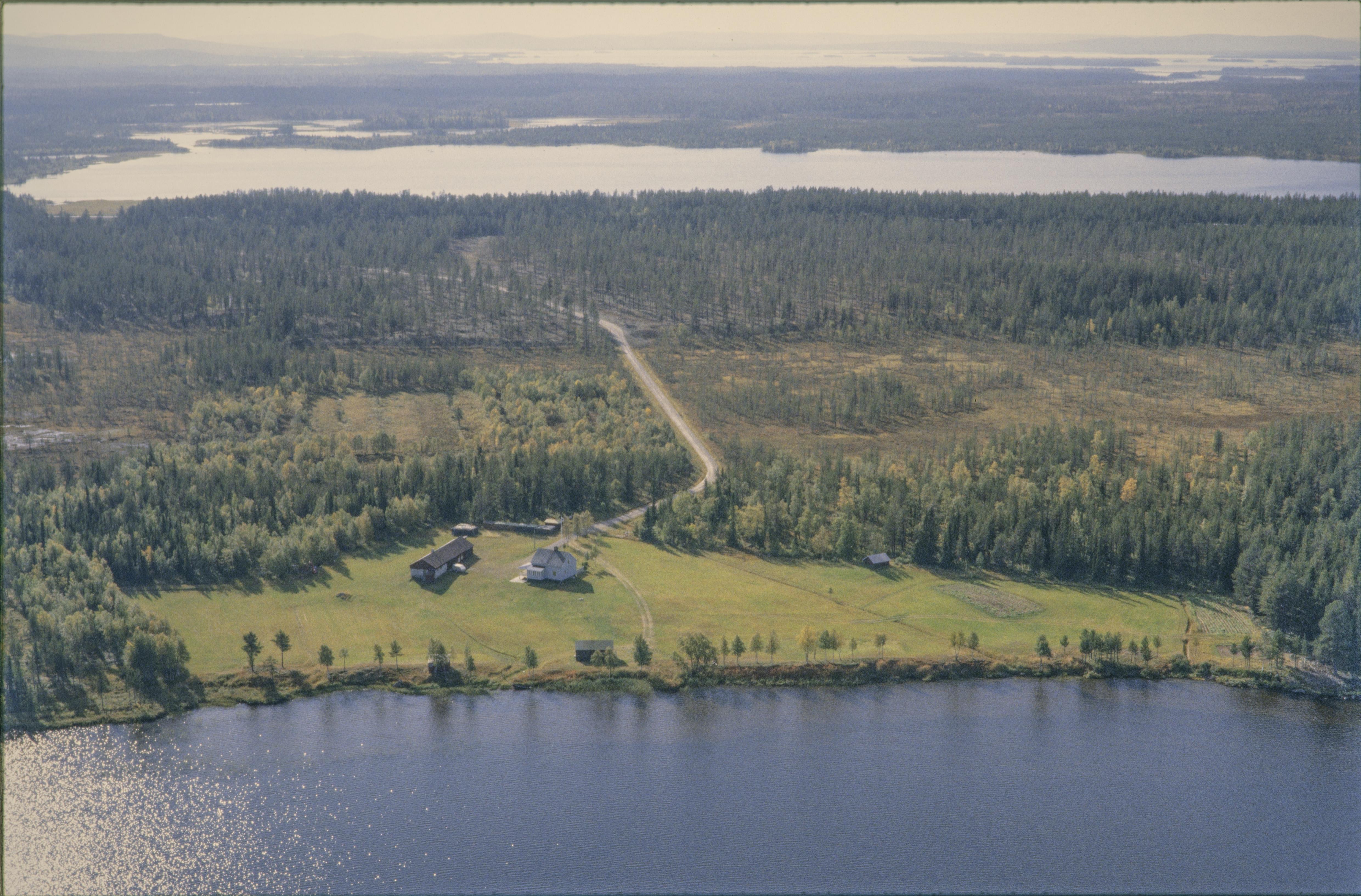 Beskrivning: Småbruk vid sjön Dellaur (Dällávrre / Dellaure). Över bildens mitt boplats RAÄnr Arjeplog 3065, i bildens högra kant fångstgrop RAÄnr Arjeplog 402:1, m.m. I bildens övre del sjön Rackträsk (Ráhkávrre). Bilden är tagen mot (väderstreck): SSV
