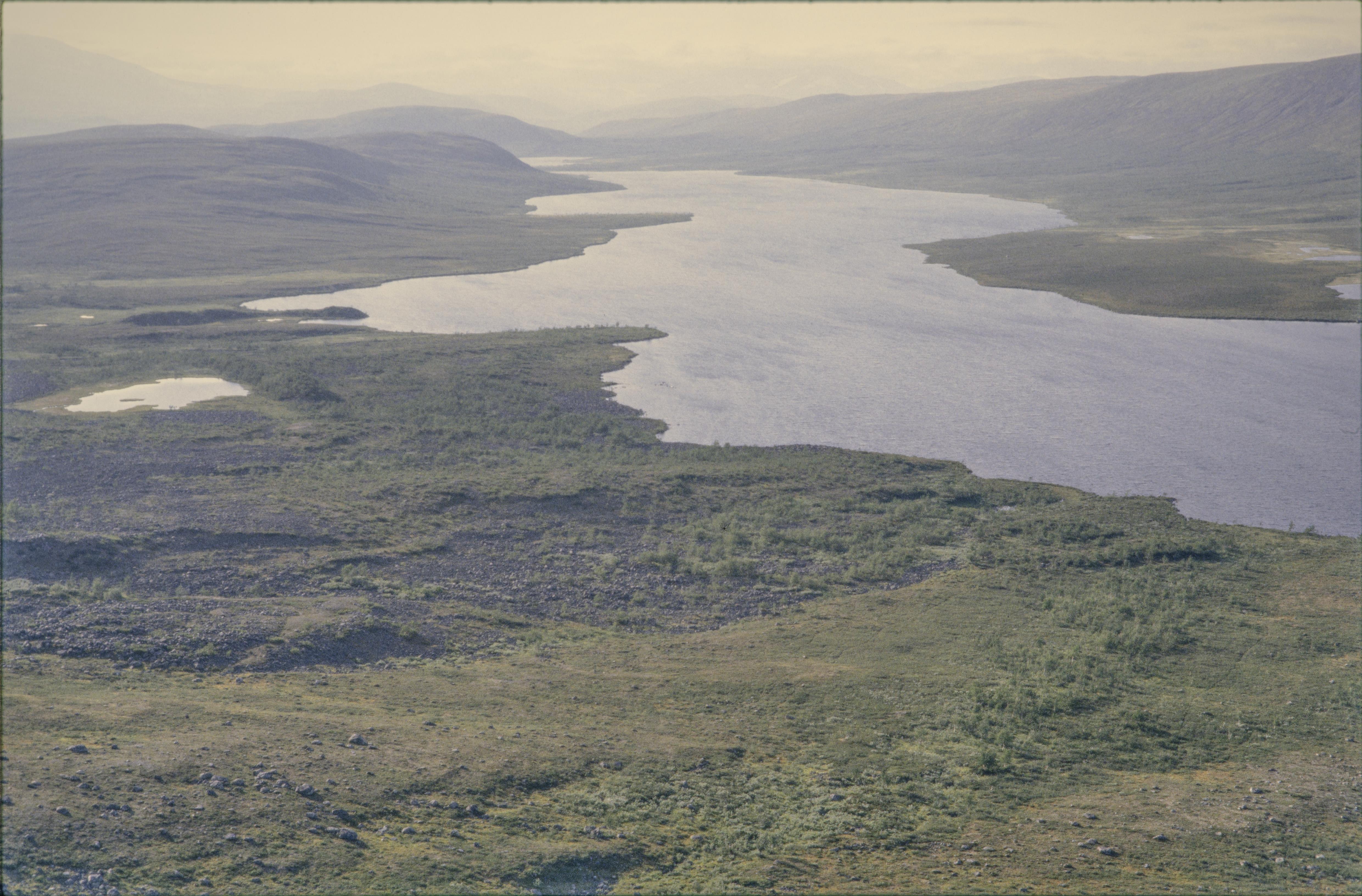 Beskrivning: Anmärkning (övrig): Området är väster om fornlämning RAÄnr Jukkasjärvi 2572 (ej i bilden). Beskrivning: Sjön Kiepanjaure (Giehpanjávri / Kiehpanjärvi). I bildens nedre del södra stranden i området under berget Giehpanvárri. Till vänster om bildens mitt sjön Darfaljaure (Darfáljávri) och till vänster i bildens övre del berget Darfál i nordvästra ändan av sjön. Bilden är tagen mot (väderstreck): NV Fotosyfte: Flygbildsdokumentation