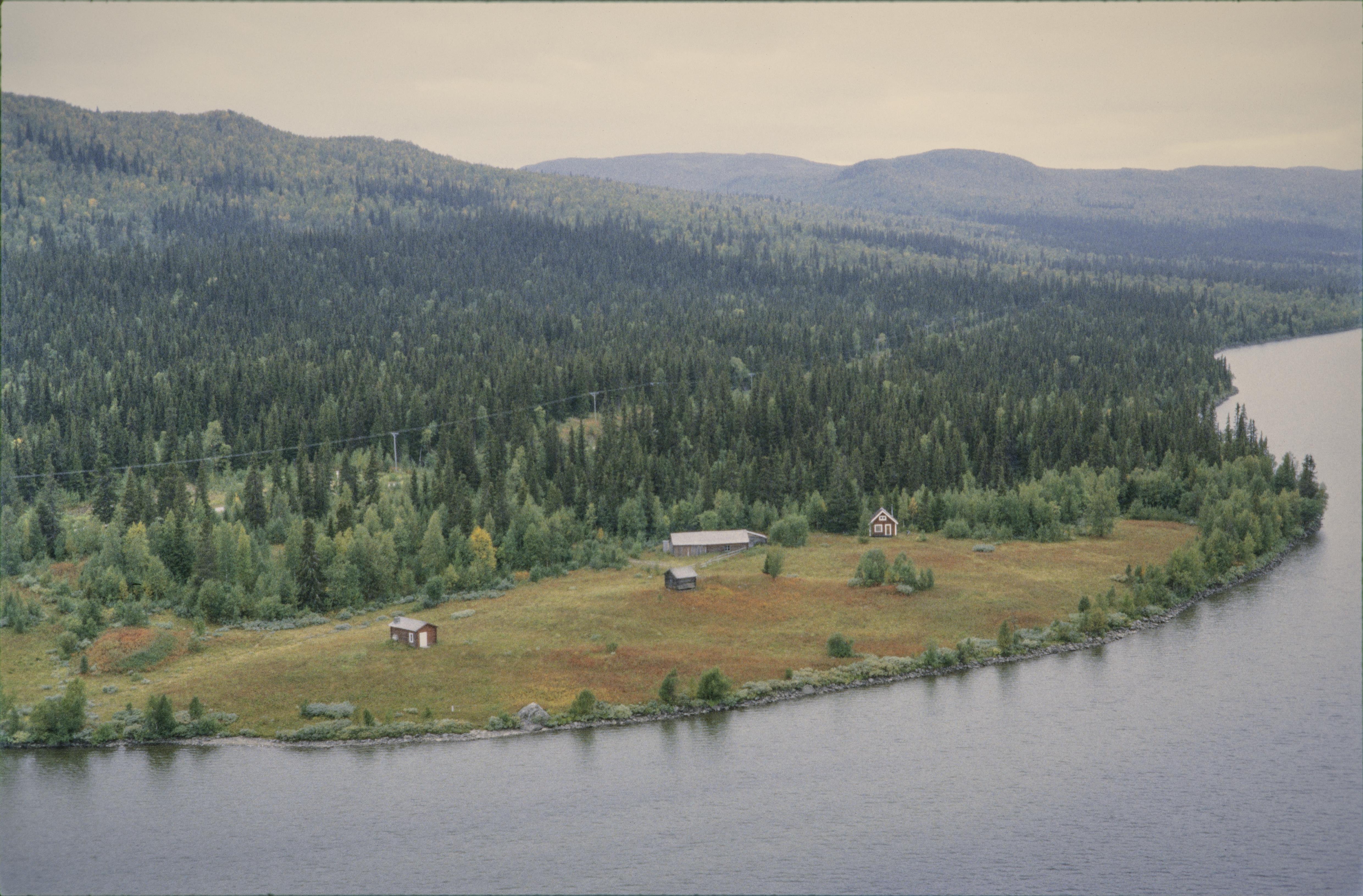 Beskrivning: Åkernäs (Rájjiegielas) gård / småbruk i södra ändan av sjön Överst-Juktan. Området ingår i Vindelfjällens naturreservat. Bilden är tagen mot (väderstreck): VNV