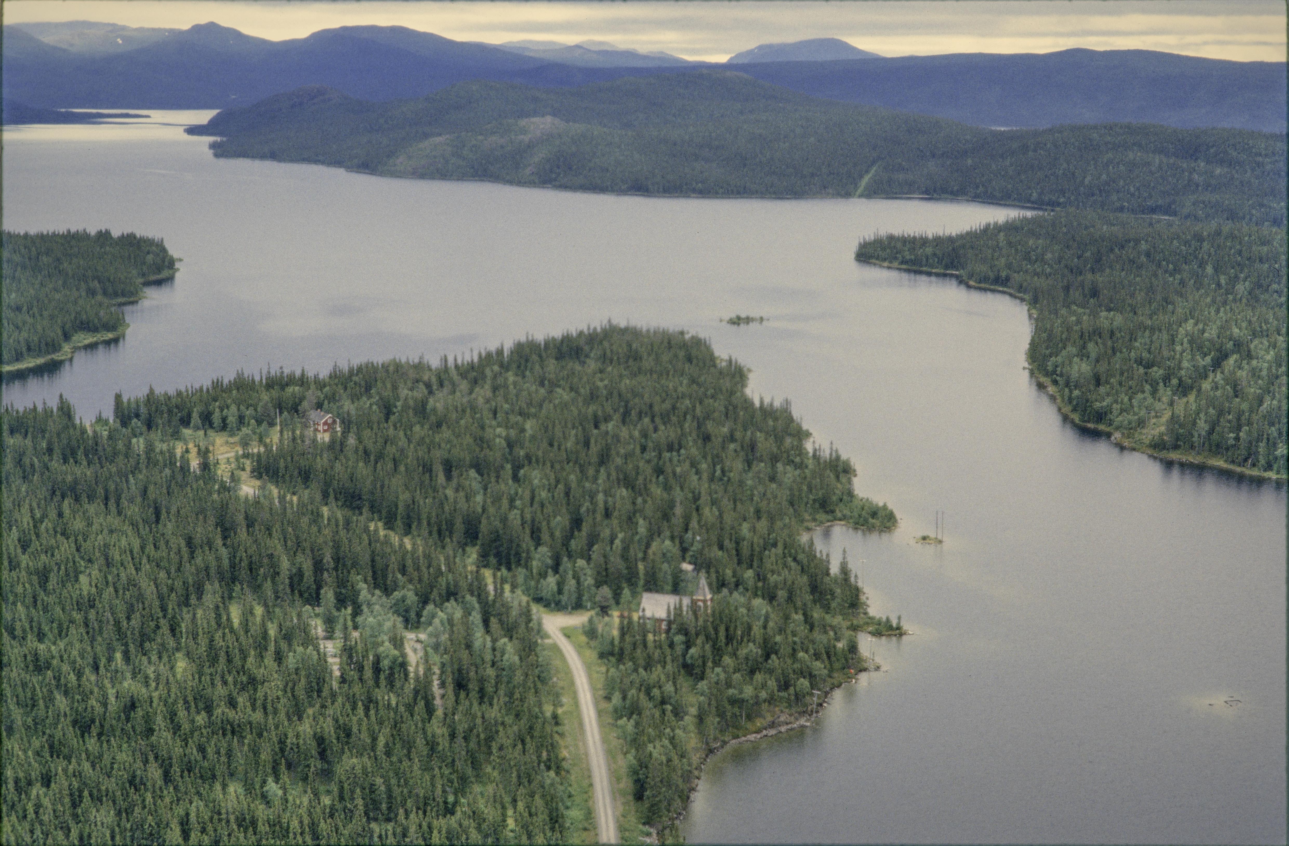 Beskrivning: Under bildens mitt Vojtjajaure kapell (skrivs även Voijtjajaure) RAÄnr Tärna 141:1 i Björkvattensdalen mellan sjöarna Säjman (i bildens övre del) och Våjhtja (i bildens nedre del). Bilden är tagen mot (väderstreck): SSO