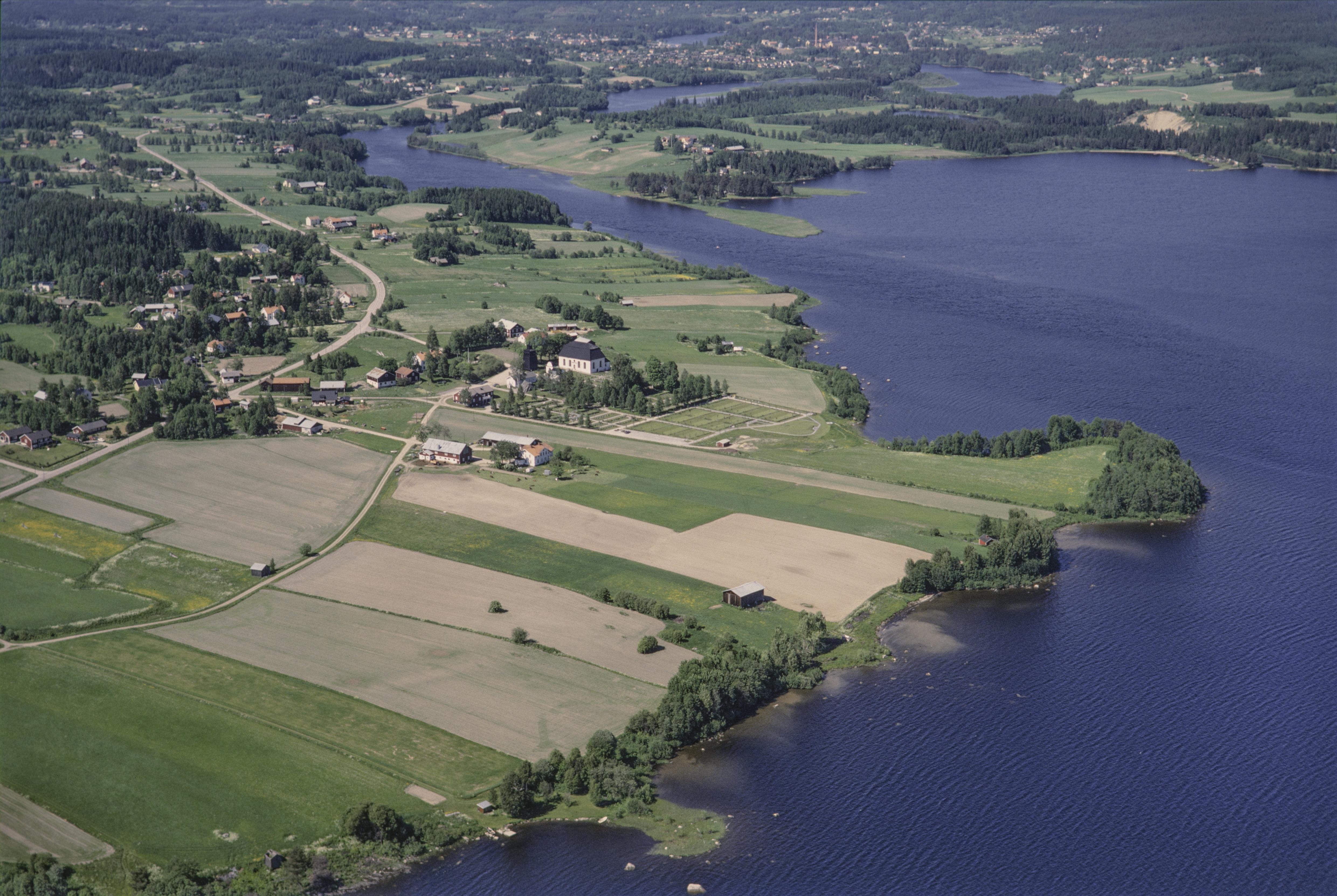 Beskrivning: Ån Ljungans dalgång vid Attmars kyrkby och sjön Marmen. Attmars kyrka i bildens mitt. Vid kyrkan boplats RAÄnr Attmar 188:1, högarna Attmar 8:1-3 m.m. I bildens övre del Matfors tätort i Tuna socken. Bilden är tagen mot (väderstreck): NNV