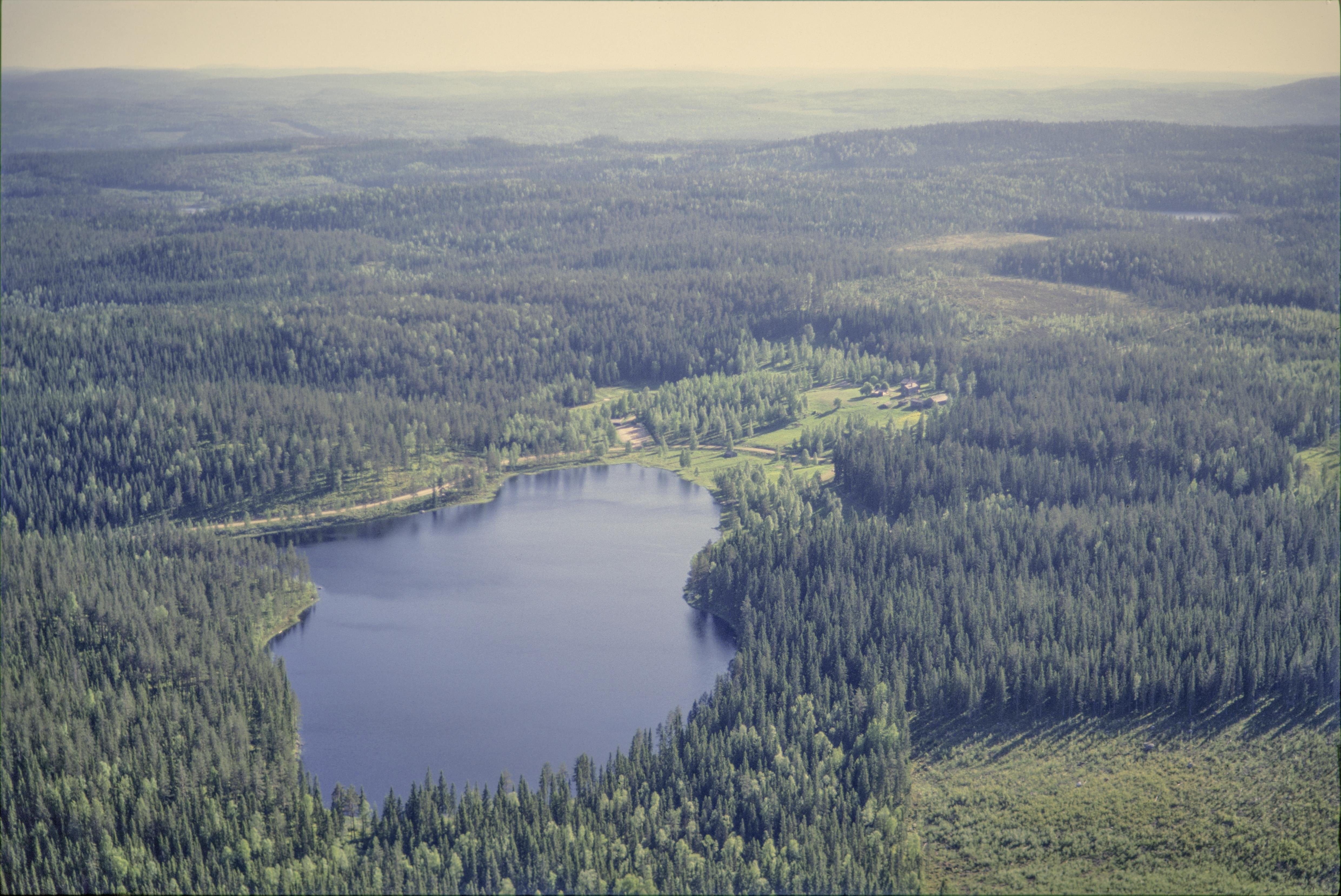Beskrivning: Sjön Gudmundstjärn. Området i och runt sjön är naturreservat. Till höger över bildens mitt skogshemmanet och byggnadsminnet Nybygget med 23 byggnader. I bildens högra kant Alberttorpet RAÄnr Indal 81:1. Bilden är tagen mot (väderstreck): SV