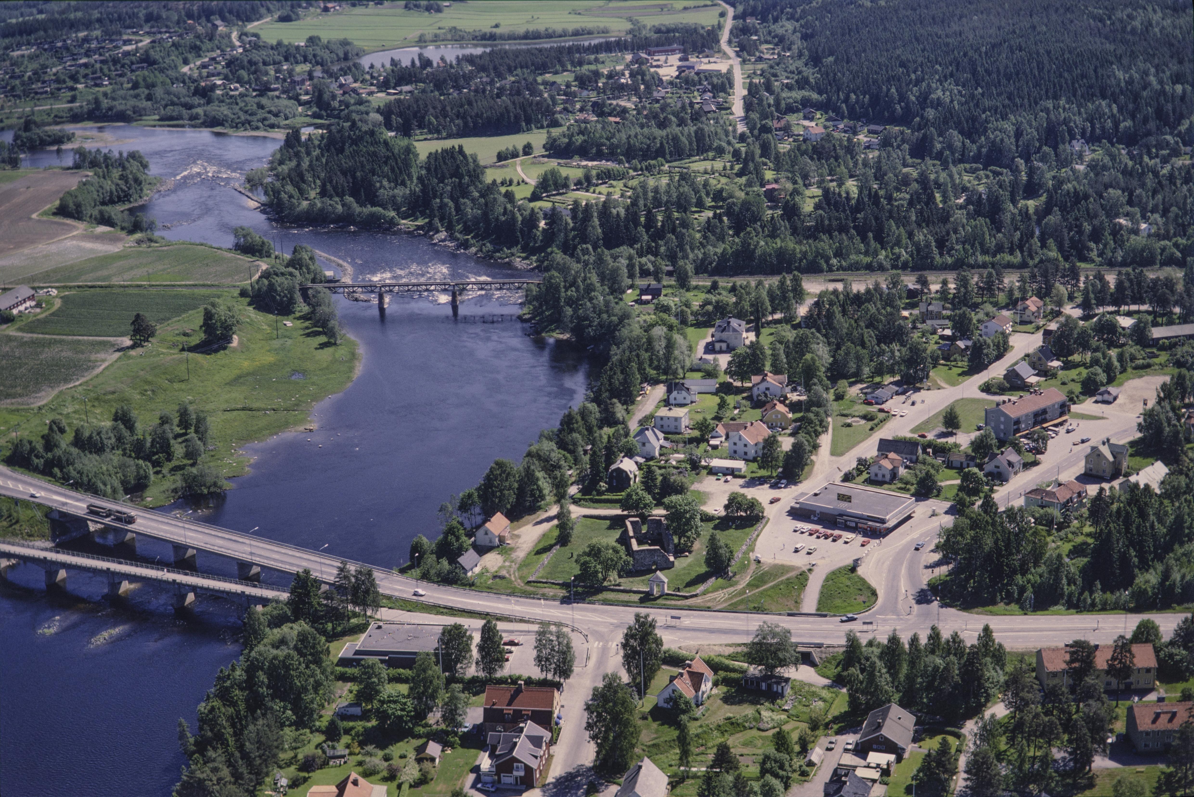 Beskrivning: Området Kyrkmon i tätorten Njurundabommen vid ån Ljungarn. Under bildens mitt Njurunda kyrkoruin och begravningsplats RAÄnr Njurunda 229:1-2. Bilden är tagen mot (väderstreck): Ö
