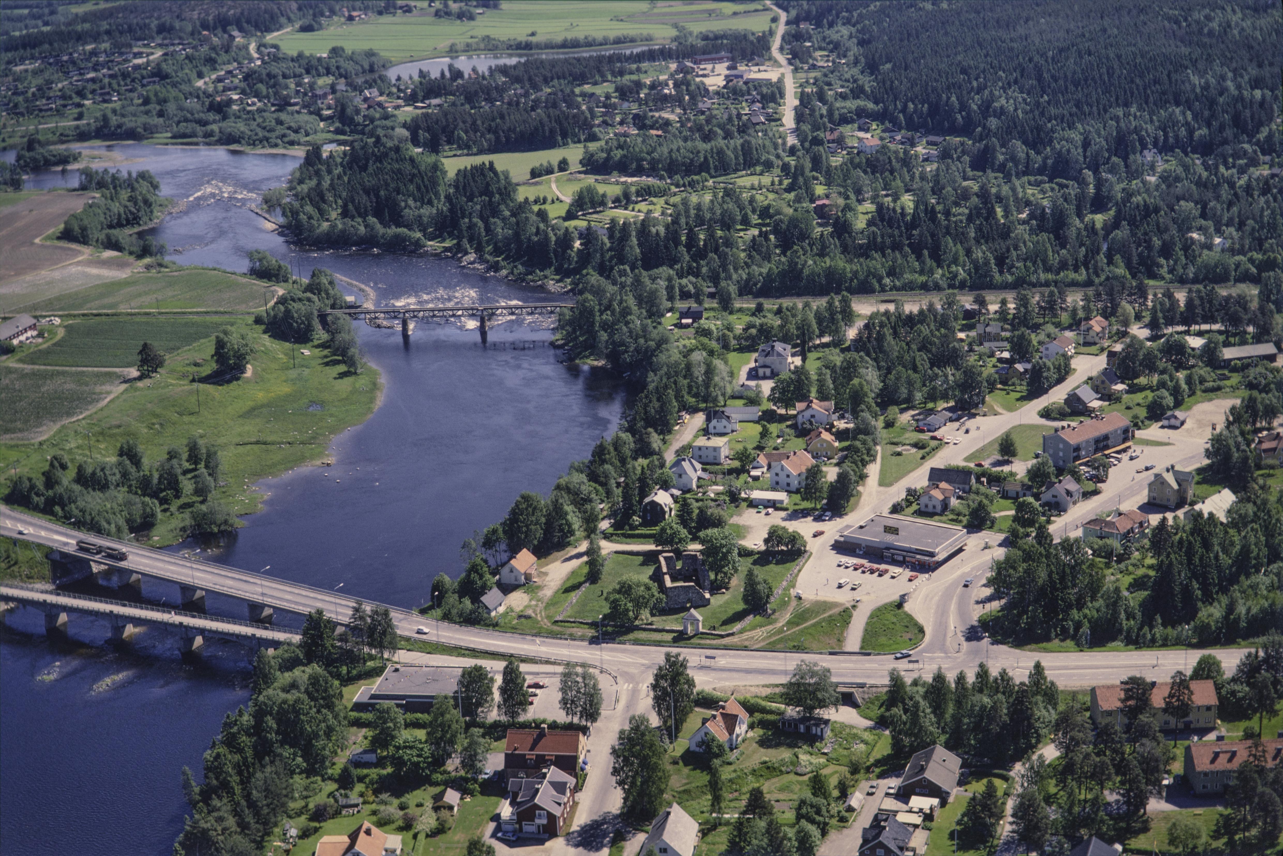 Beskrivning: Området Kyrkmon i tätorten Njurundabommen vid ån Ljungarn. Under bildens mitt Njurunda kyrkoruin och begravningsplats RAÄnr Njurunda 229:1-2. Bilden är tagen mot (väderstreck): Ö