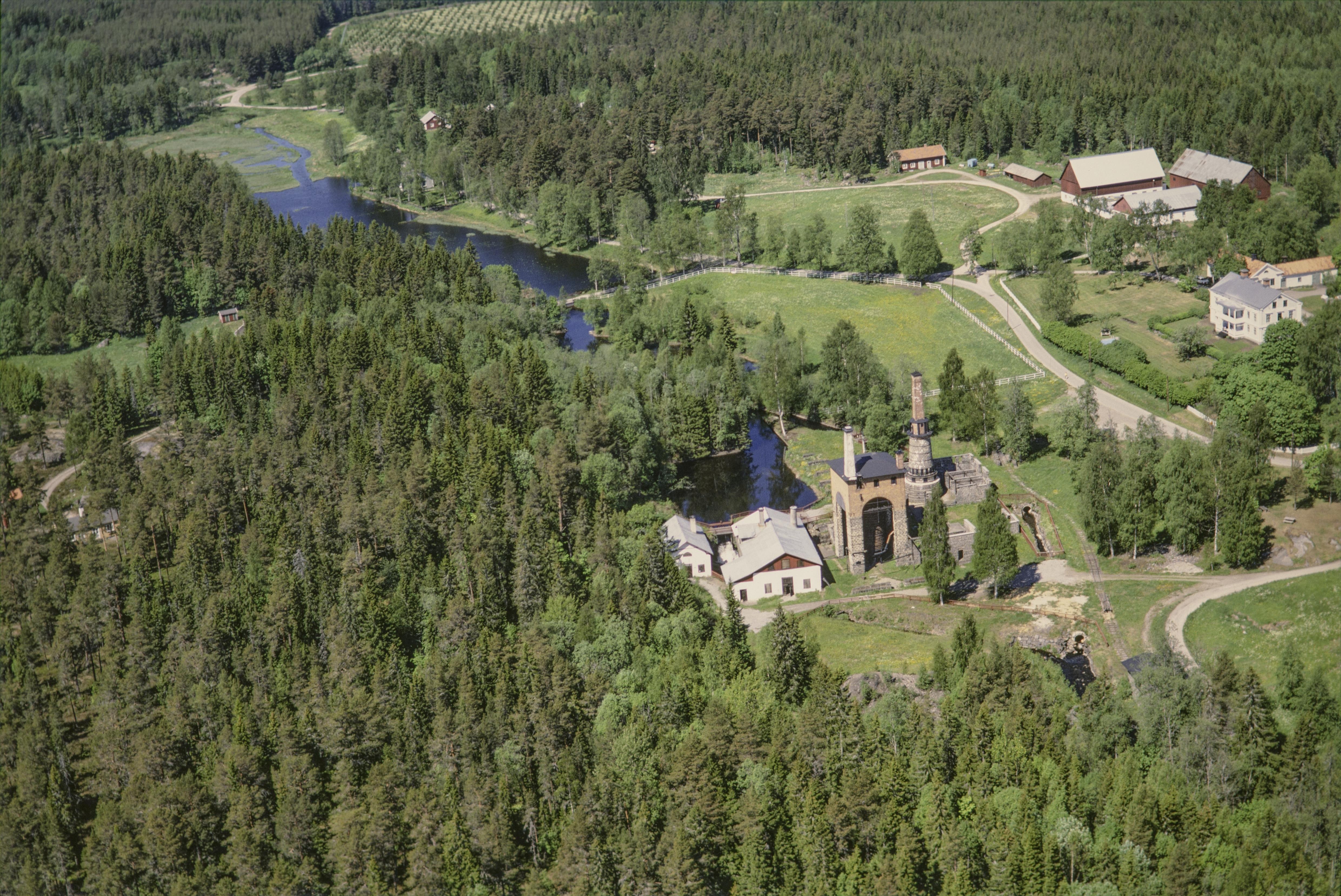 Beskrivning: Galtströms bruk i Armsjöåns dalgång. Hyttområde, blästbrukslämning, bruksherrgård, dammvall m.m. RAÄnr Njurunda 91:1-4. I skogen till vänster om bildens mitt blästbrukslämning RAÄnr Njurunda 91:5. Galtströms herrgård till höger om bildens mitt. Bruksdammen över bildens mitt. Bilden är tagen mot (väderstreck): VNV