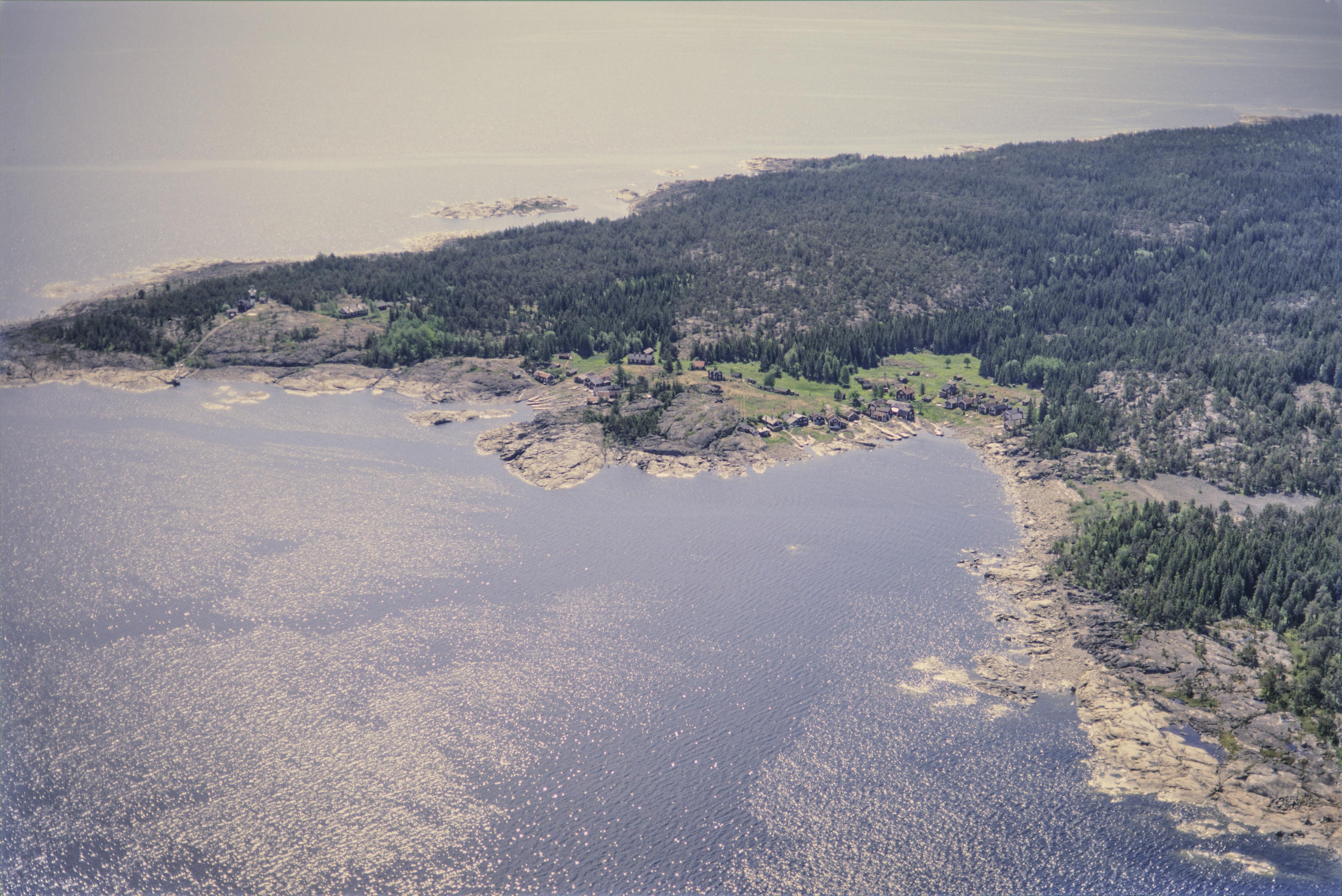 Beskrivning: Brämön vid Njurundakusten, i området söder om Sundsvallsbukten. Brämöns fiskeläge med Brämöns kapell i nordöstra delen av ön, I bildens vänstra kant Brämöns fyrplats på Revudden. I området skeppslämning RAÄnr Njurunda 815. Bilden är tagen mot (väderstreck): SO