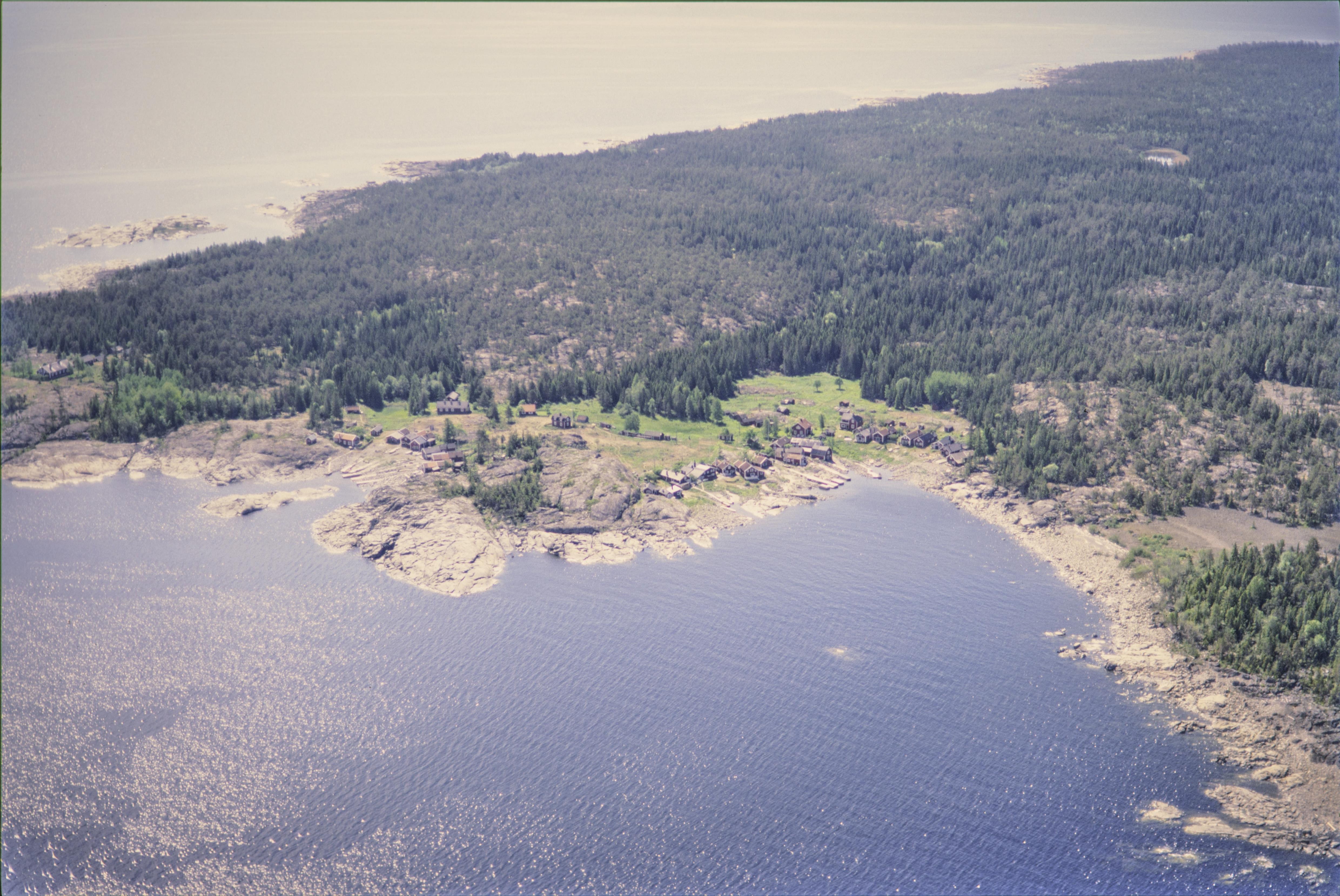 Beskrivning: Brämön vid Njurundakusten, i området söder om Sundsvallsbukten. Brämöns fiskeläge med Brämöns kapell i nordöstra delen av ön, I bildens vänstra kant Brämöns fyrplats på Revudden. I området skeppslämning RAÄnr Njurunda 815. Bilden är tagen mot (väderstreck): SSO