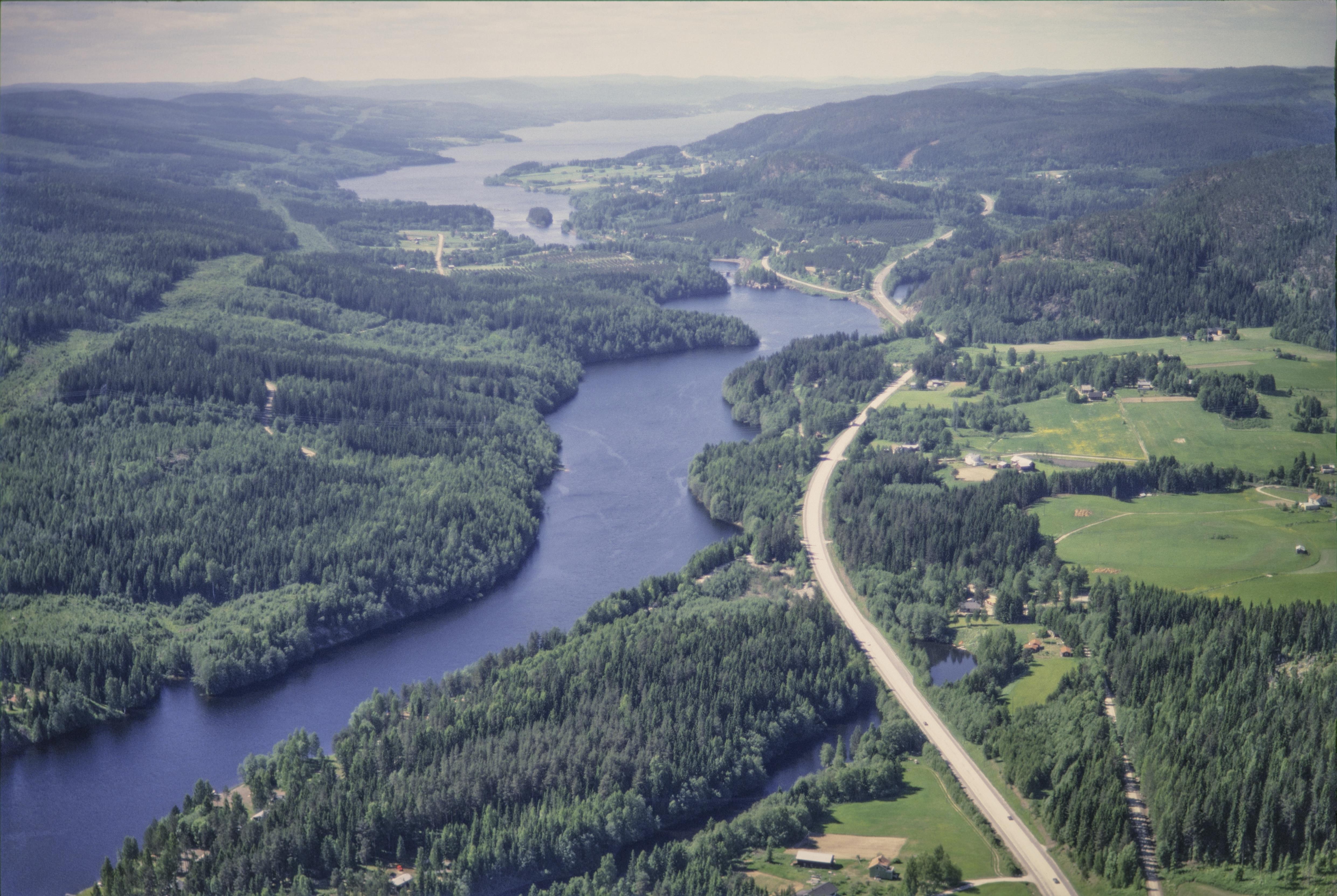 Beskrivning: Ån Ljungans dalgång vid Hällsjö. Till höger längs ån pilgrimleden Sankt Olavsleden. Till höger under bildens mitt område med träindustri RAÄnr Tuna 312:1. Vid bildens mitt gränsen mot Stöde socken. Stödesjön i bildens övre del. Bilden är tagen mot (väderstreck): V