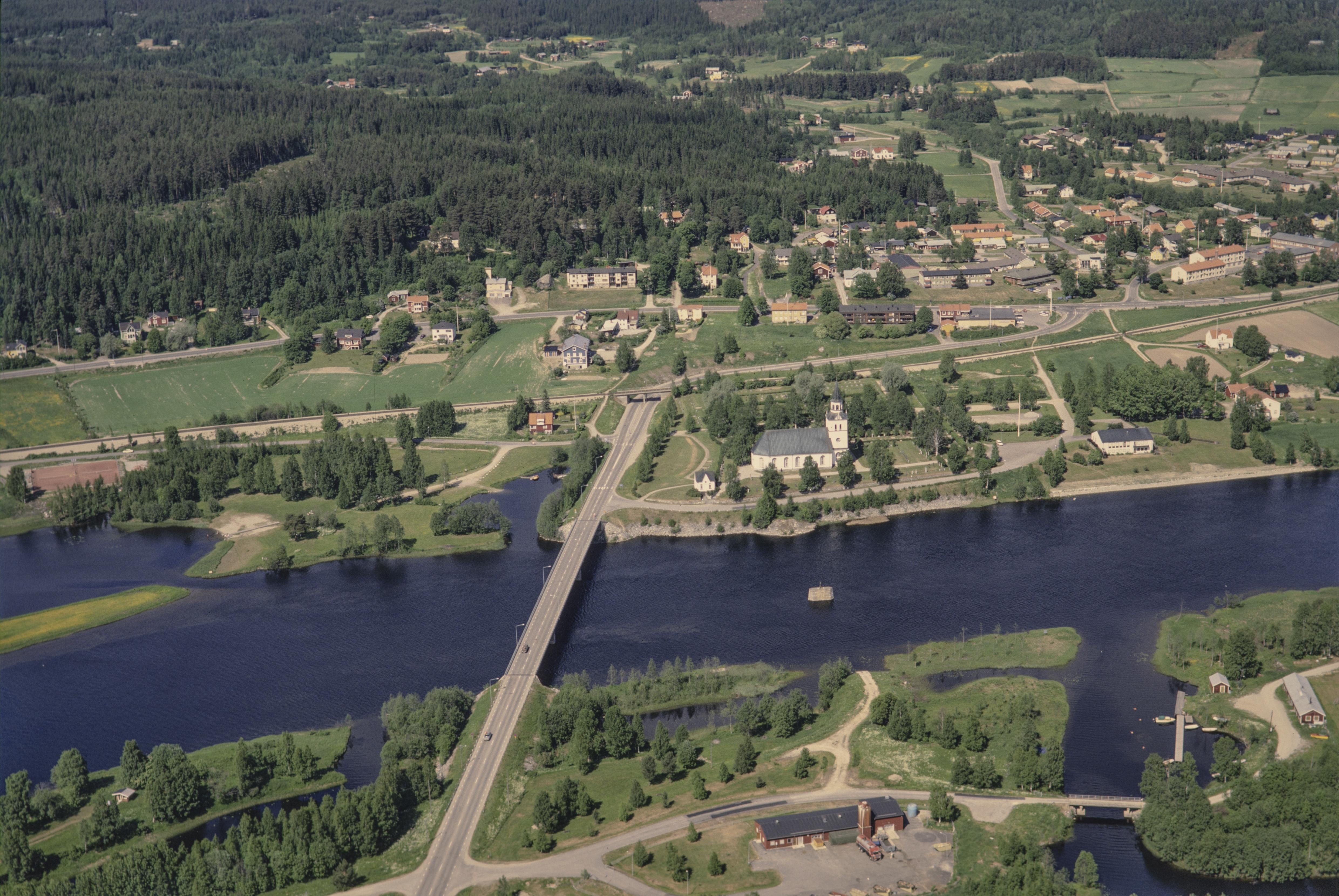 Beskrivning: Ån Ljungans dalgång vid Stödesjön. Stöde kyrka och kyrkby i bildens mitt. Vid stranden under bildens mitt grav RAÄnr Stöde 50:1. Bilden är tagen mot (väderstreck): N