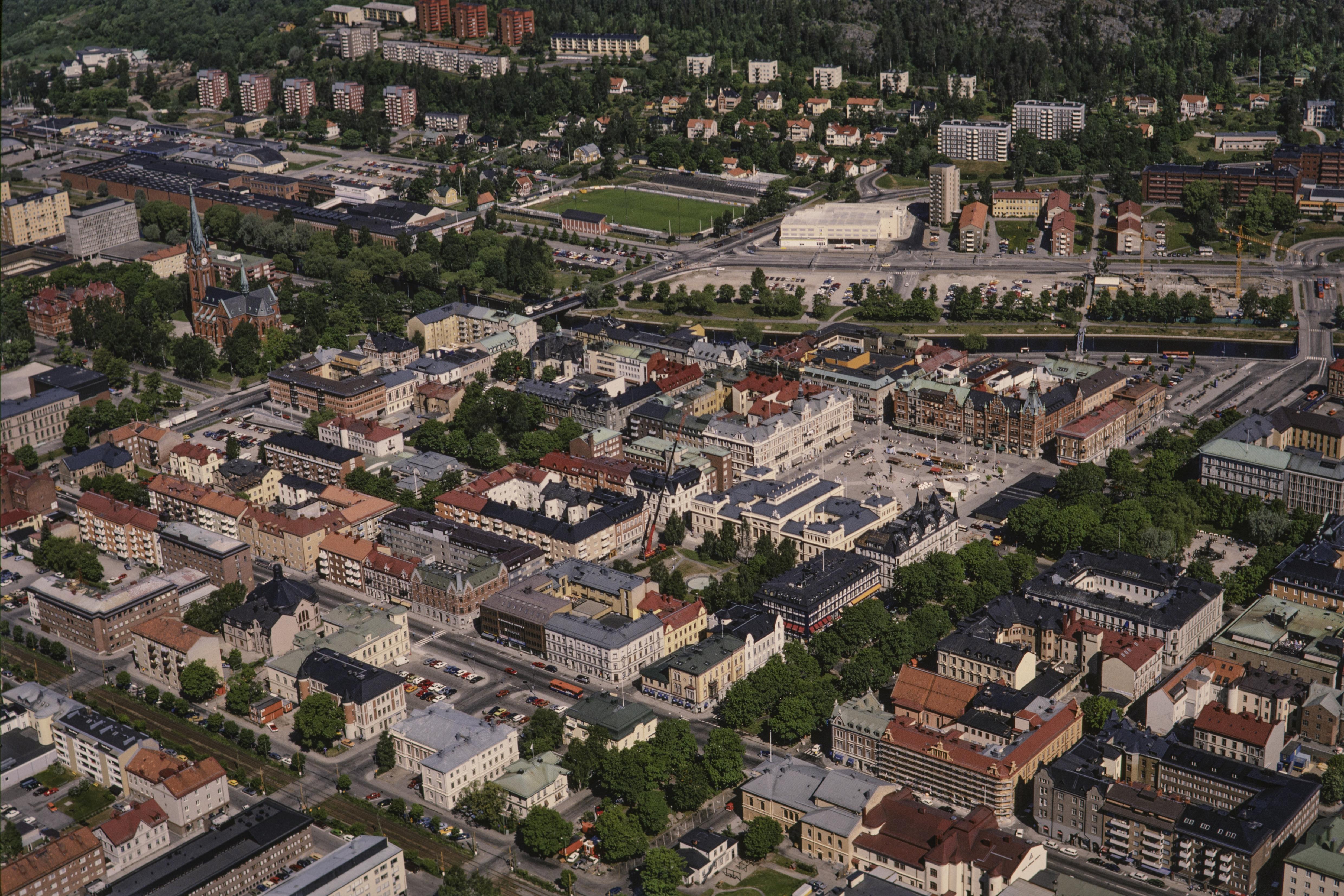 Beskrivning: Sundsvall stad. Området Stenstaden. Till vänster över bildens mitt Gustav Adolfs kyrka i stadslager RAÄnr Sundsvall 21:1. Selångerån i bildens övre del. Bilden är tagen mot (väderstreck): NNV