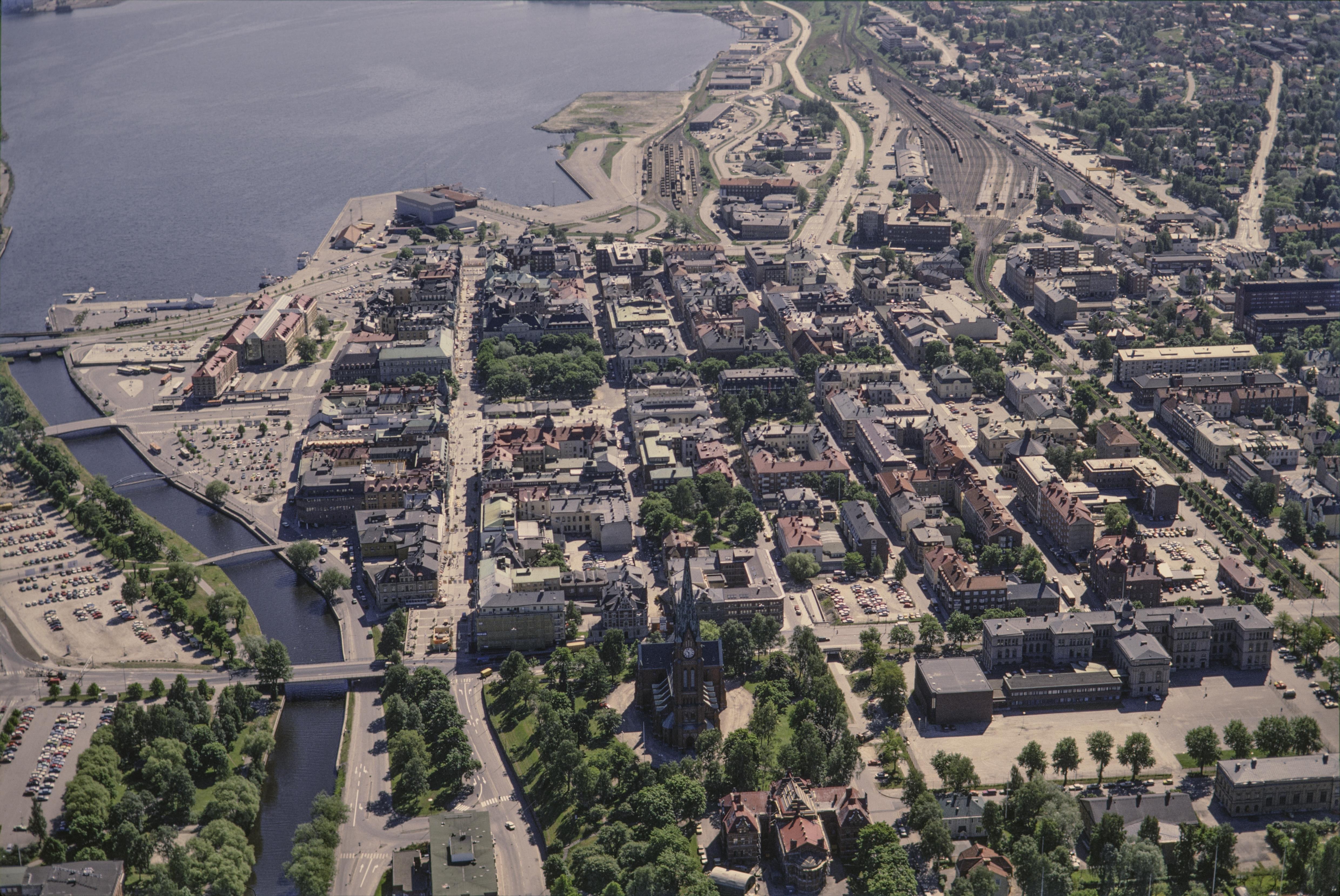 Beskrivning: Anmärkning (övrig): Riksintresse-nr/namn: Y8 - Sundsvall. Socken: Sundsvall. Motivering: Stadsmiljö och centrum i en industriregion. Unikt uttryck för sågverksindustrins expansion och det sena 1800-talets burgna stadsbyggande med storstadsmässiga ambitioner samt parallellt härmed utbyggd arbetar- och hantverkarförort. - Uttryck för riksintresset: Stadskärnans rutnätsplan som i grunden härstammar från 1600-talet och de förändringar och utvidgningar som genomfördes vid 1800-talets slut. Stenstadsbebyggelsen som tillkom under en kort period efter den förödande branden 1888. Hamn- och järnvägsmiljöer. Stenhammaren med träbebyggelse, karaktäristiska uthus och trädgårdar. [Texten uppdaterat av Riksantikvarieämbetet våren 2013.] Beskrivning: Sundsvall stad. I bildens nedre del området Stenstaden och Selångeråns utlopp i Sundsvallsfjärden. Under bildens mitt Gustav Adolfs kyrka i stadslager RAÄnr Sundsvall 21:1. Bilden är tagen mot (väderstreck): OSO Fotosyfte: Flygbildsdokumentation