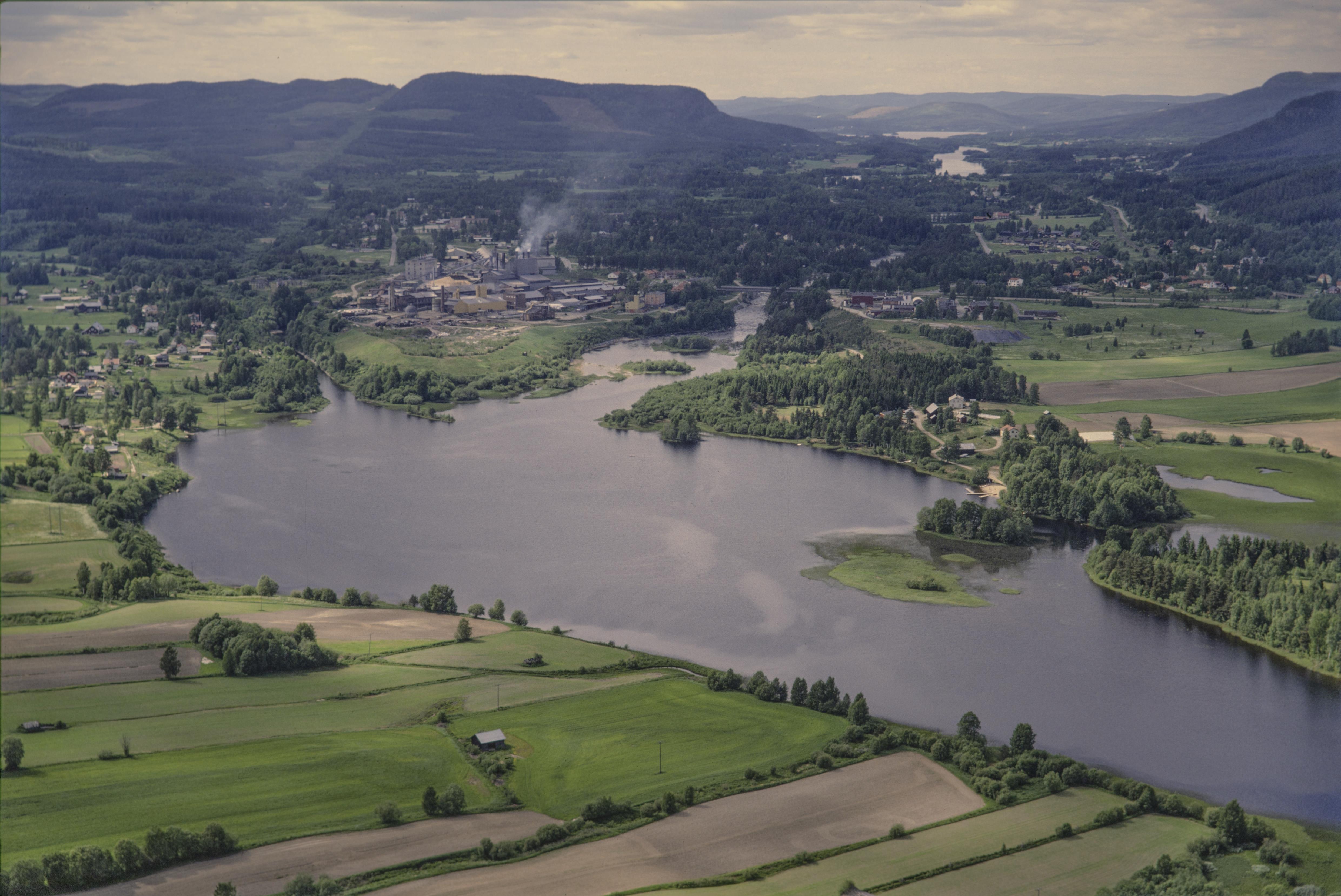 Beskrivning: Ån Ljungans dalgång vid tätorten Ljungaverk. Till höger om bildens mitt boplats RAÄnr Torp 264:1 vid stranden. Bilden är tagen mot (väderstreck): VNV