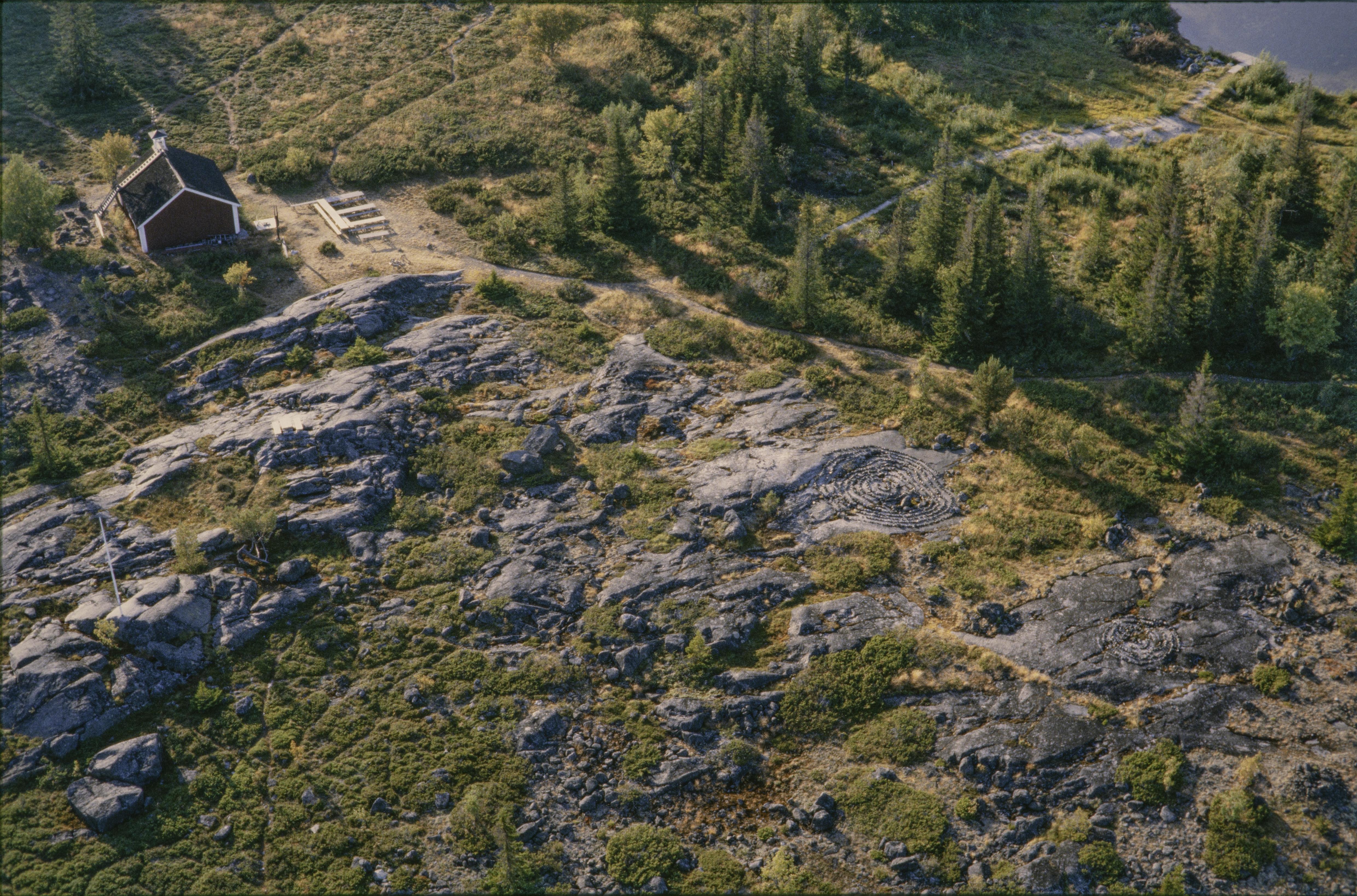 Beskrivning: Fiskeläget Småskär på ön Småskären i östra delen av Bastaskärsfjärden. Vid bildens mitt fiskeläge/husgrund och labyrint RAÄnr Nederluleå 953:1 vid tingsplats Nederluleå 125:1, m.m. Småskärs kapell uppe till vänster. Bilden är tagen mot (väderstreck): VNV
