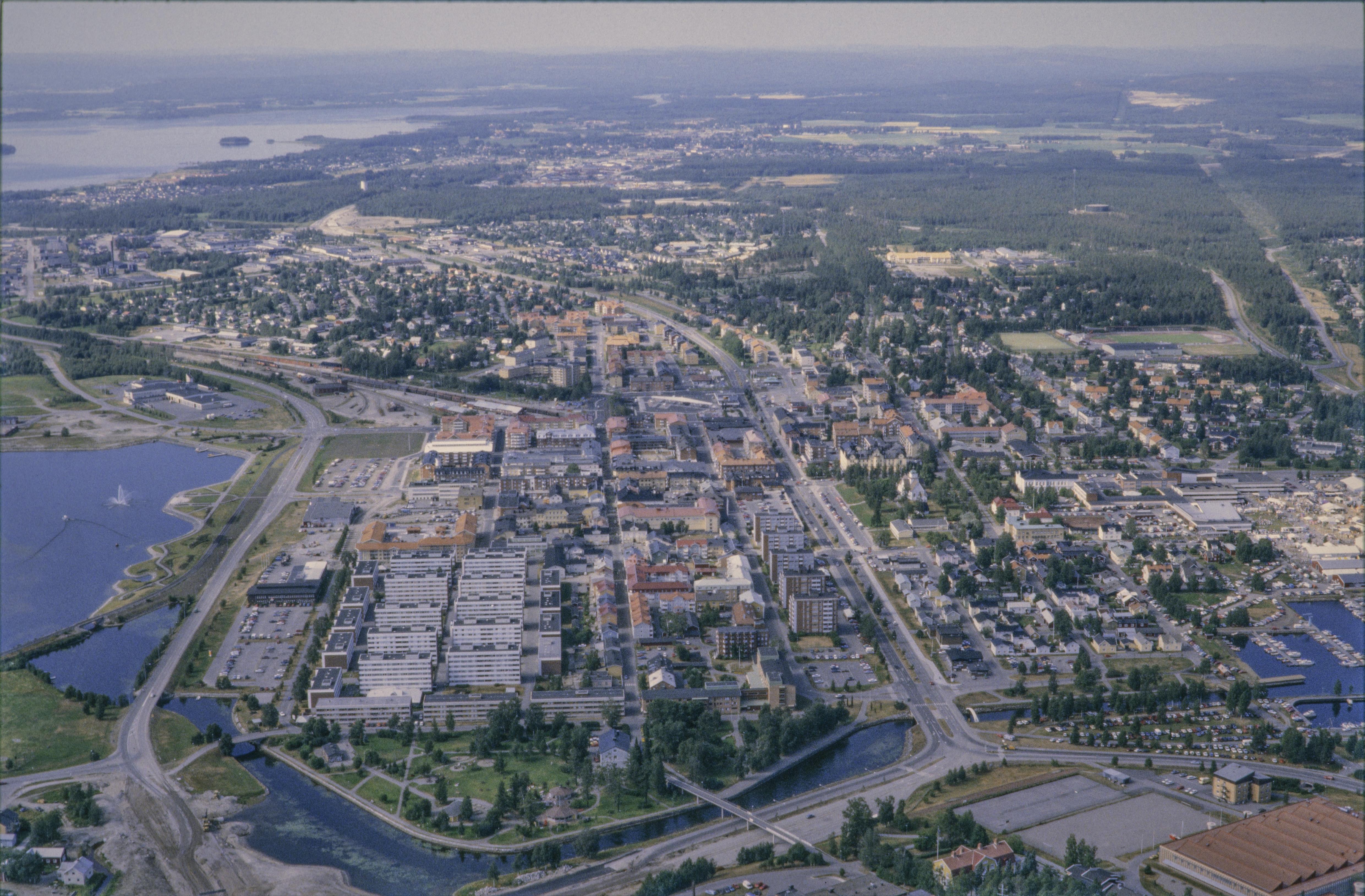 Beskrivning: Piteå stad / tätort. I bildens mitt och nedre del stadslager RAÄnr Piteå socken 226:1. Piteå Stads kyrka till höger om bildens mitt. I bildens nedre kant gränsen mot Piteå socken. Bilden är tagen mot (väderstreck): NV