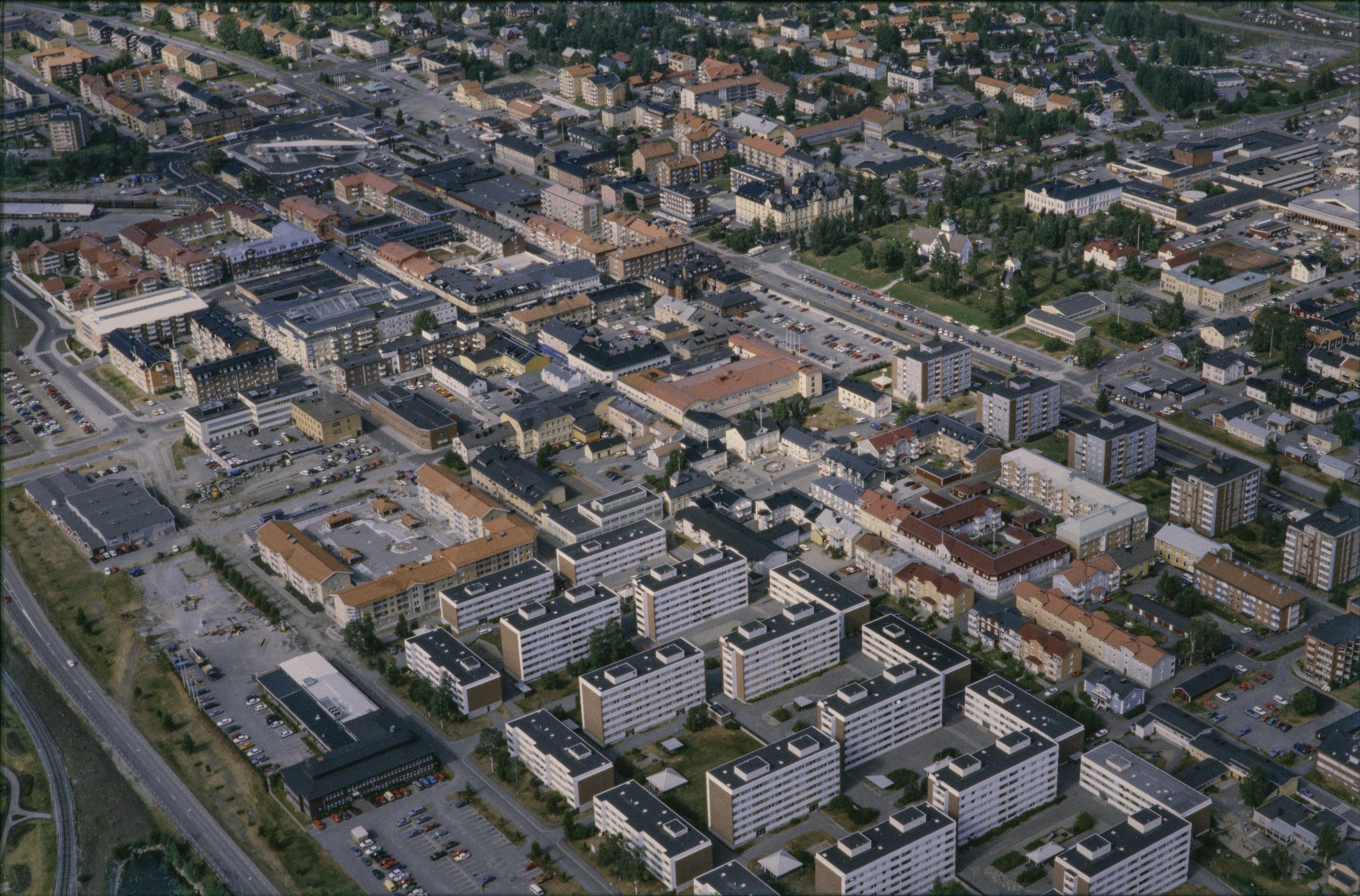 Beskrivning: Piteå stad / tätort. Vid bildens mitt stadslager RAÄnr Piteå socken 226:1. Piteå Stads kyrka uppe till höger. Bilden är tagen mot (väderstreck): N