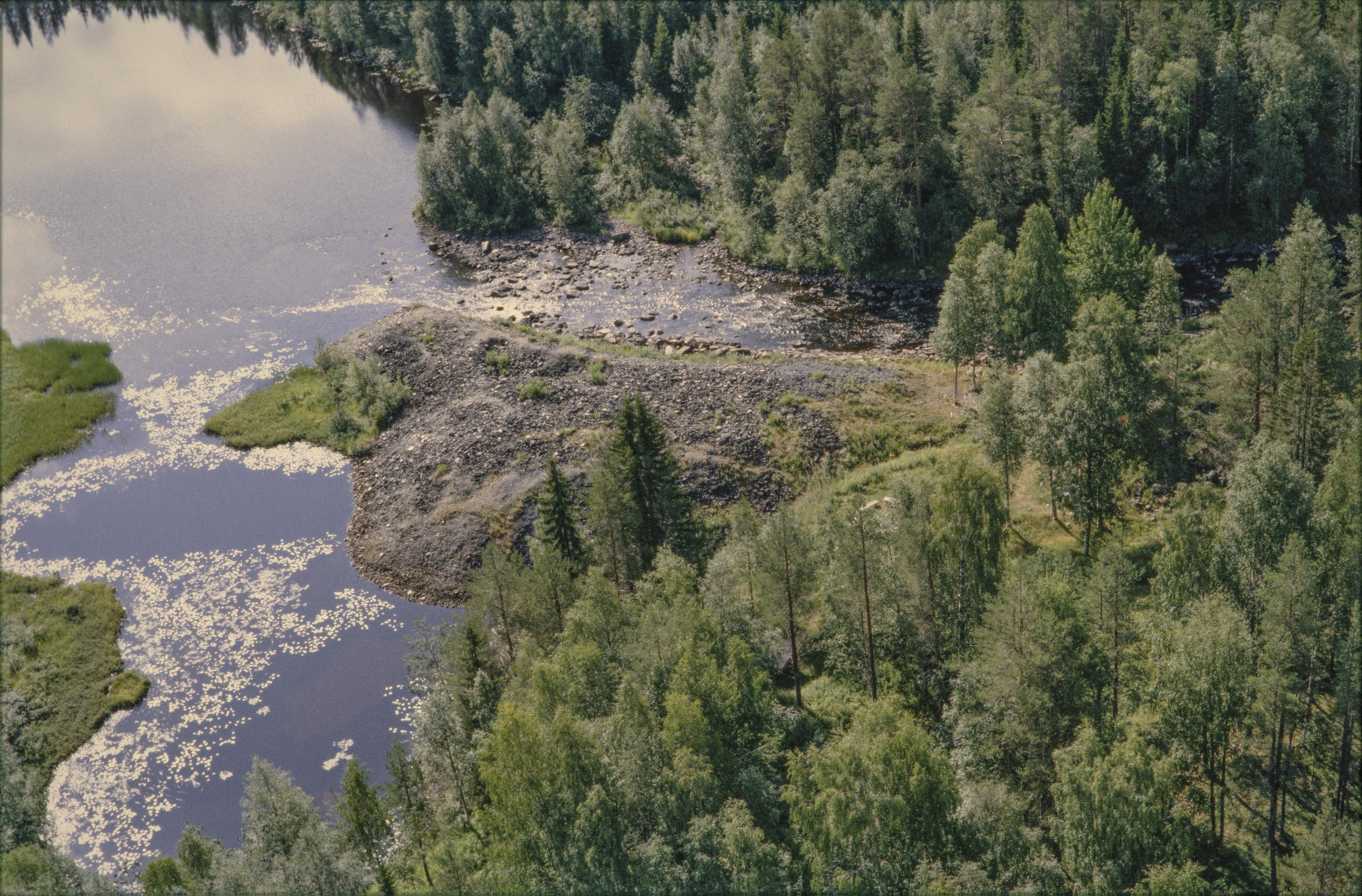 Beskrivning: Avafors bruk vid Masugnsforsen och Masugnsviken i Vitån. Bruks- och hyttlämningar RAÄnr Råneå 35:1-2 vid bildens mitt. Bilden är tagen mot (väderstreck): SV
