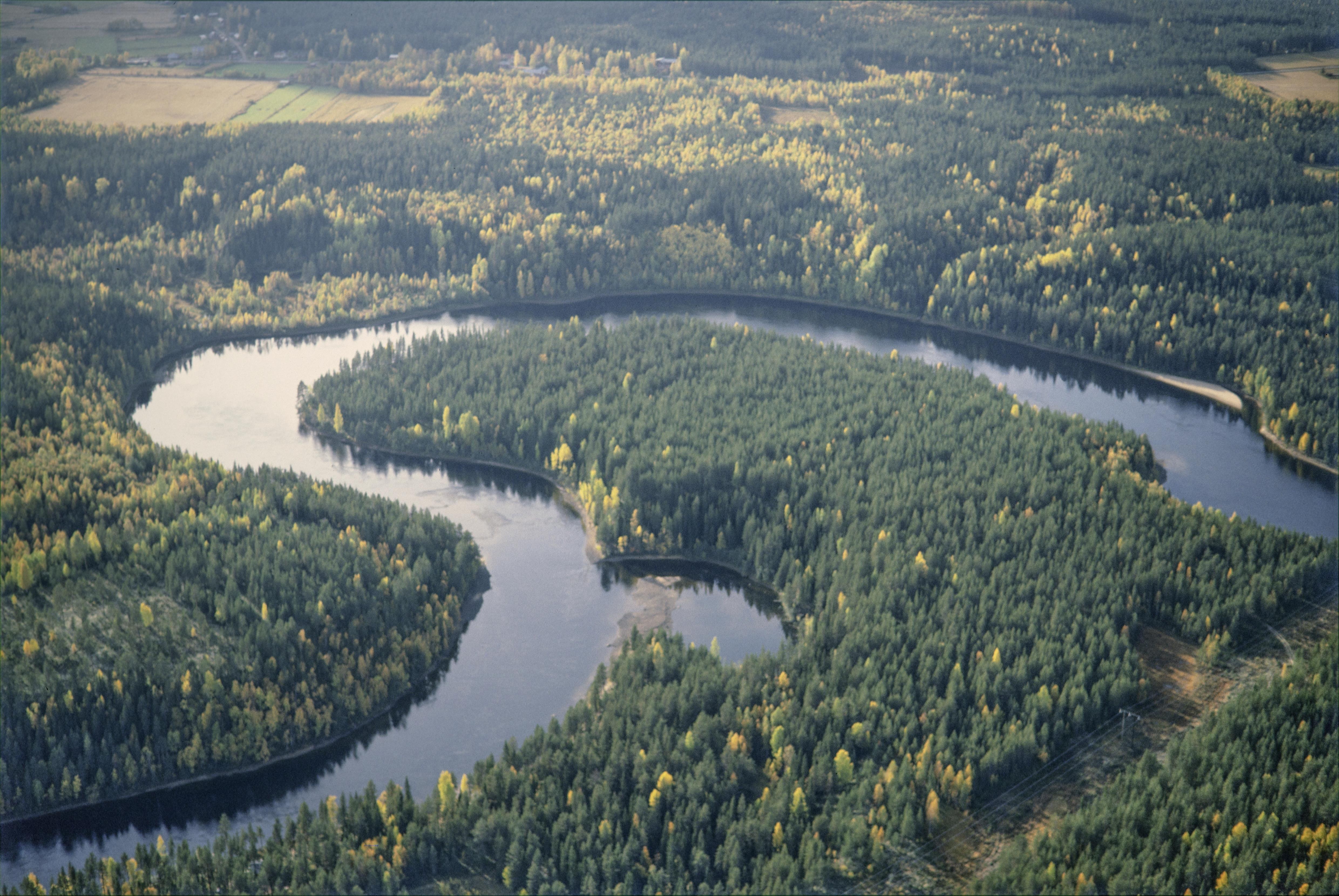 Beskrivning: Vid bildens mitt udden Hästskon i Piteälvens dalgång, sydväst om byn Strycktjärn. På och vid udden fångstgropar RAÄnr Älvsby 75:1, 77:1-2, m.m. Bilden är tagen mot (väderstreck): SV