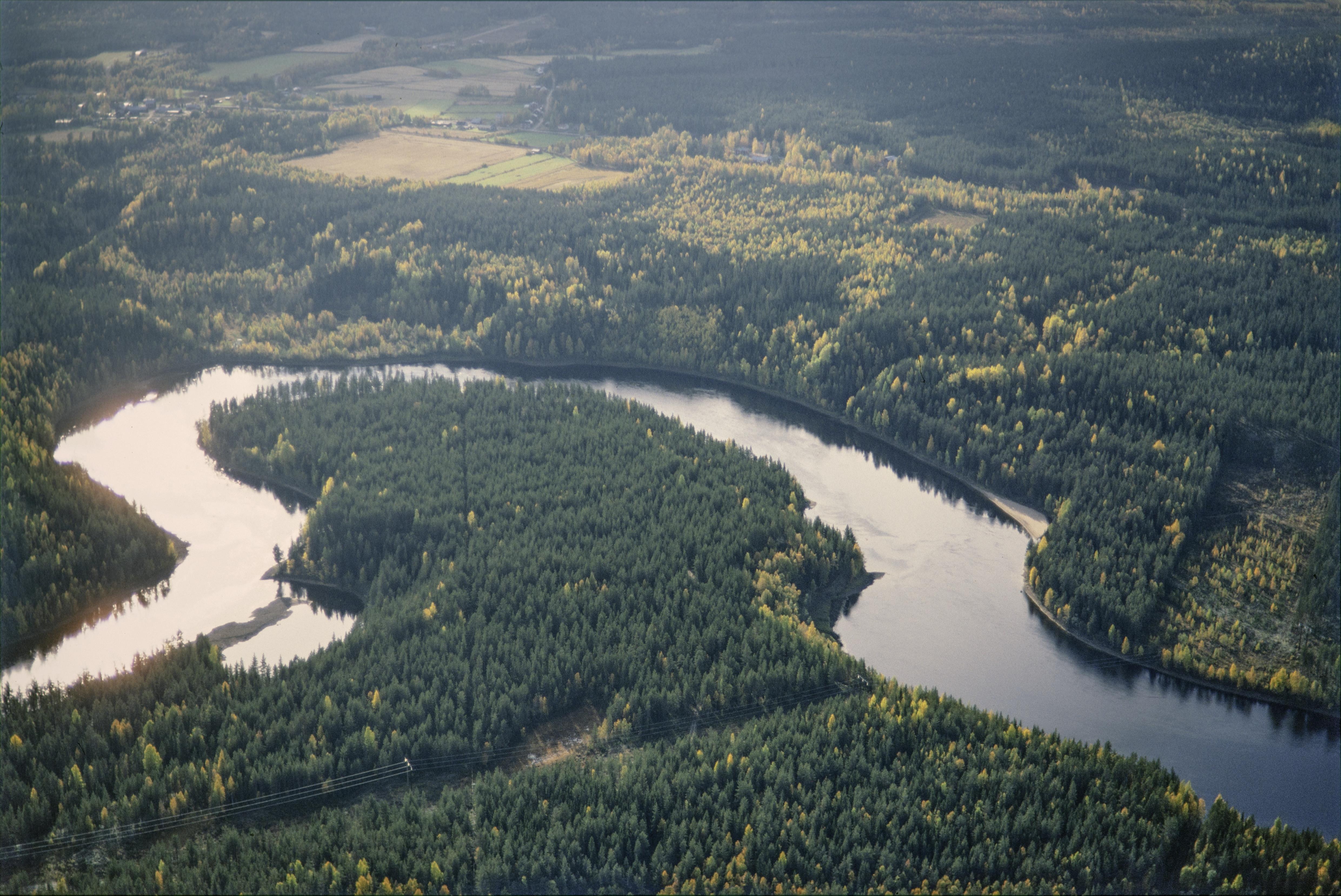 Beskrivning: Vid bildens mitt udden Hästskon i Piteälvens dalgång, sydväst om byn Strycktjärn. På och vid udden fångstgropar RAÄnr Älvsby 75:1, 77:1-2, m.m. Bilden är tagen mot (väderstreck): S