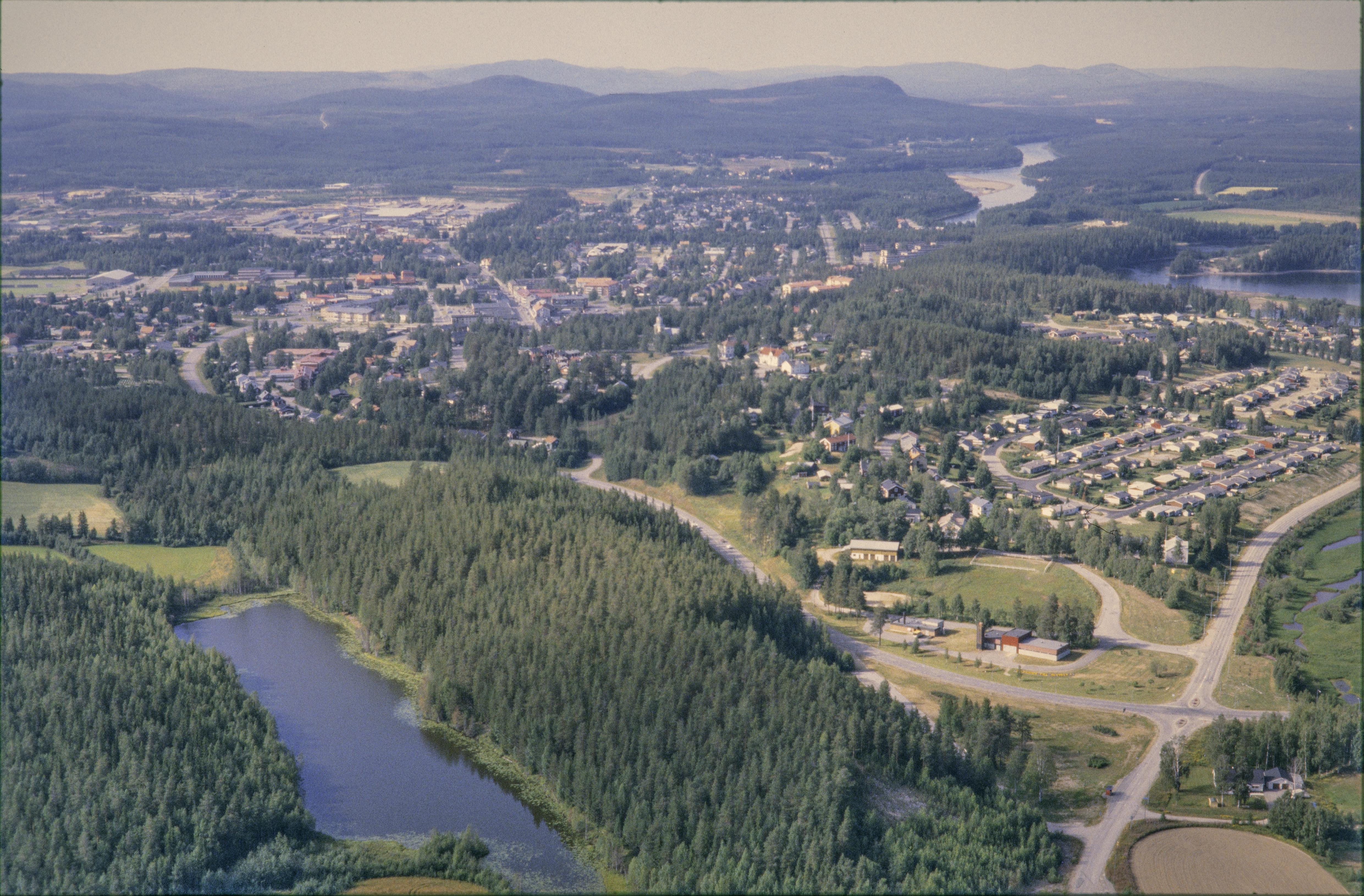 Beskrivning: Älvsbyn tätort och kyrkby vid Piteälven. Till höger under bildens mitt bytomt RAÄnr Älvsby 151:1, 153:1 m.fl. Älvsby kyrka vid bildens mitt. Bilden är tagen mot (väderstreck): NV