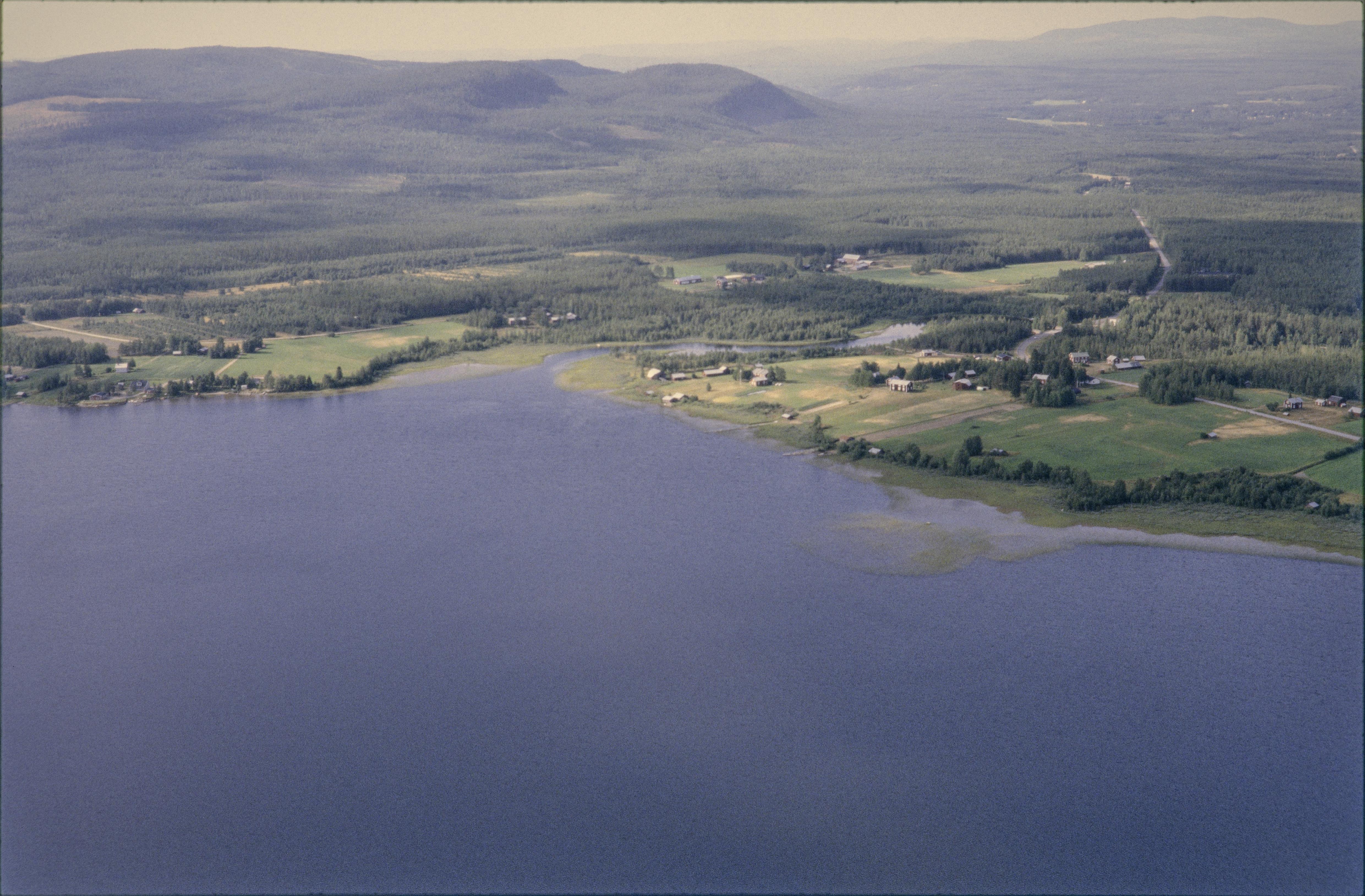 Beskrivning: Över bildens mitt Manjärvs by vid Vistån i norra delen av sjön Manjärv. I byn bytomt RAÄnr Älvsby 906:1-2. Bilden är tagen mot (väderstreck): NV